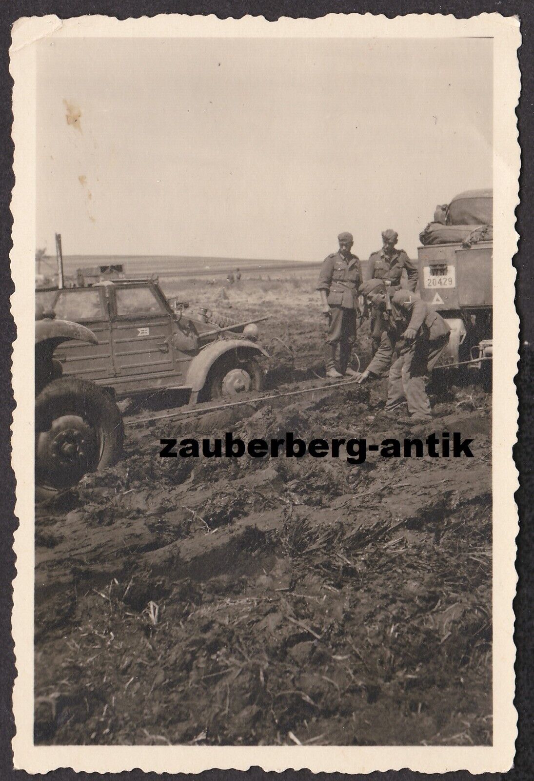 Foto Wehrmacht VW Volkswagen Kübelwagen Typ 82 im Osten Wappen 198.Inf.Div.