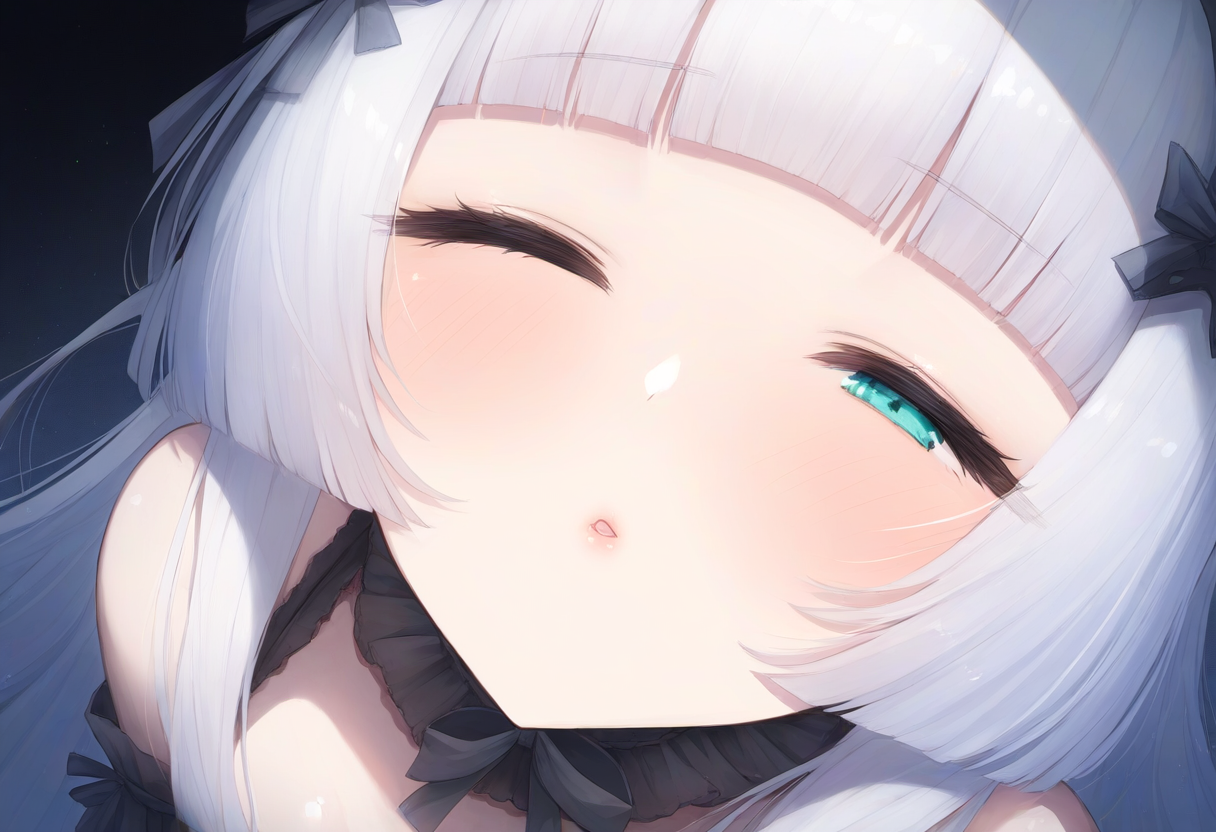 1girl, aqua eyes, long hair, hime cut, white hair, {short bangs}, small breasts, s-1059927148