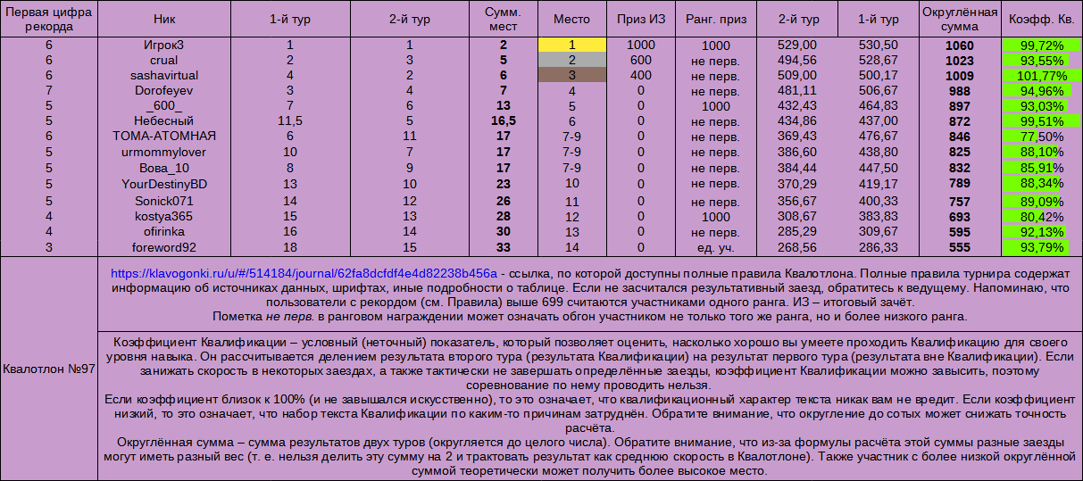 Квалотлон №97, итоговый зачёт