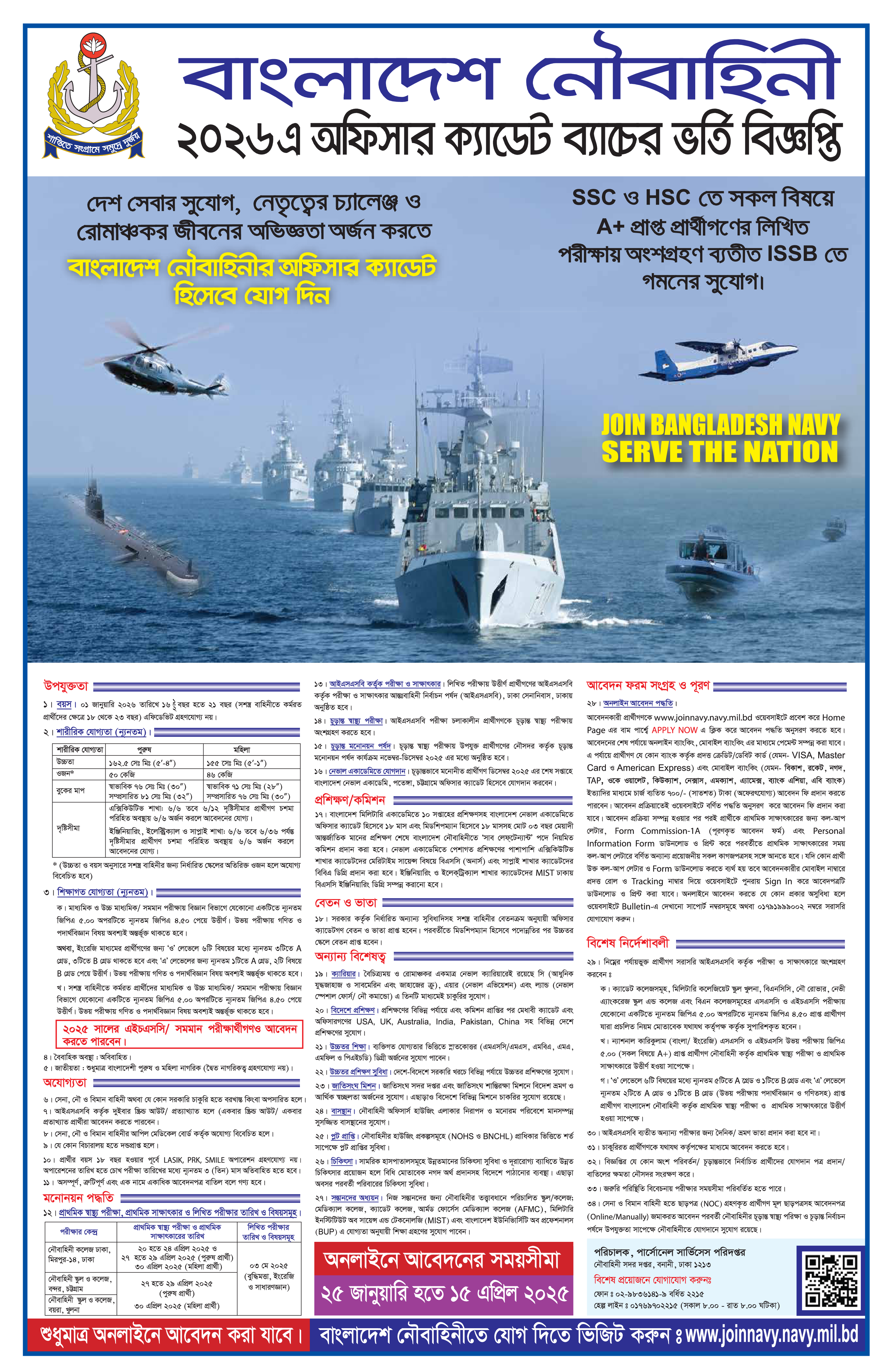 Navy 2026A Officer Cadet Batch Job Circular 2025 PDF