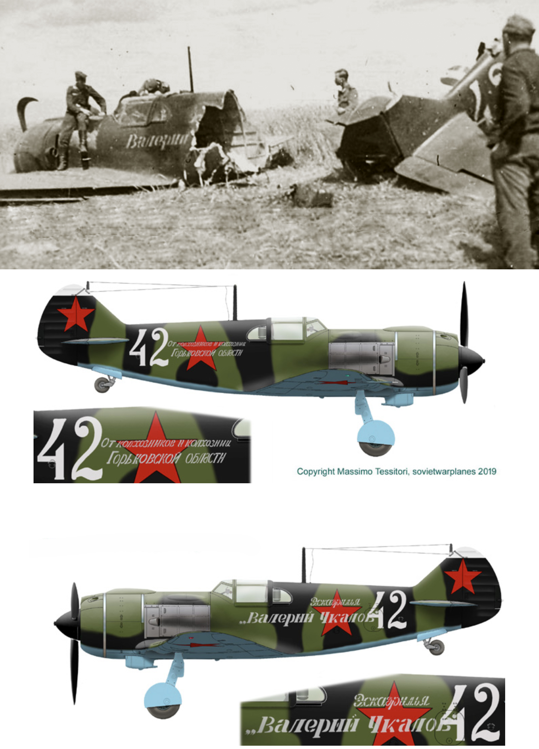 Lavochkin-La-5-xxIAP-White-42-slogan-Eskadrilya-Valeriy-Chkalow-shot-down-Orel-Kursk-1943-0B