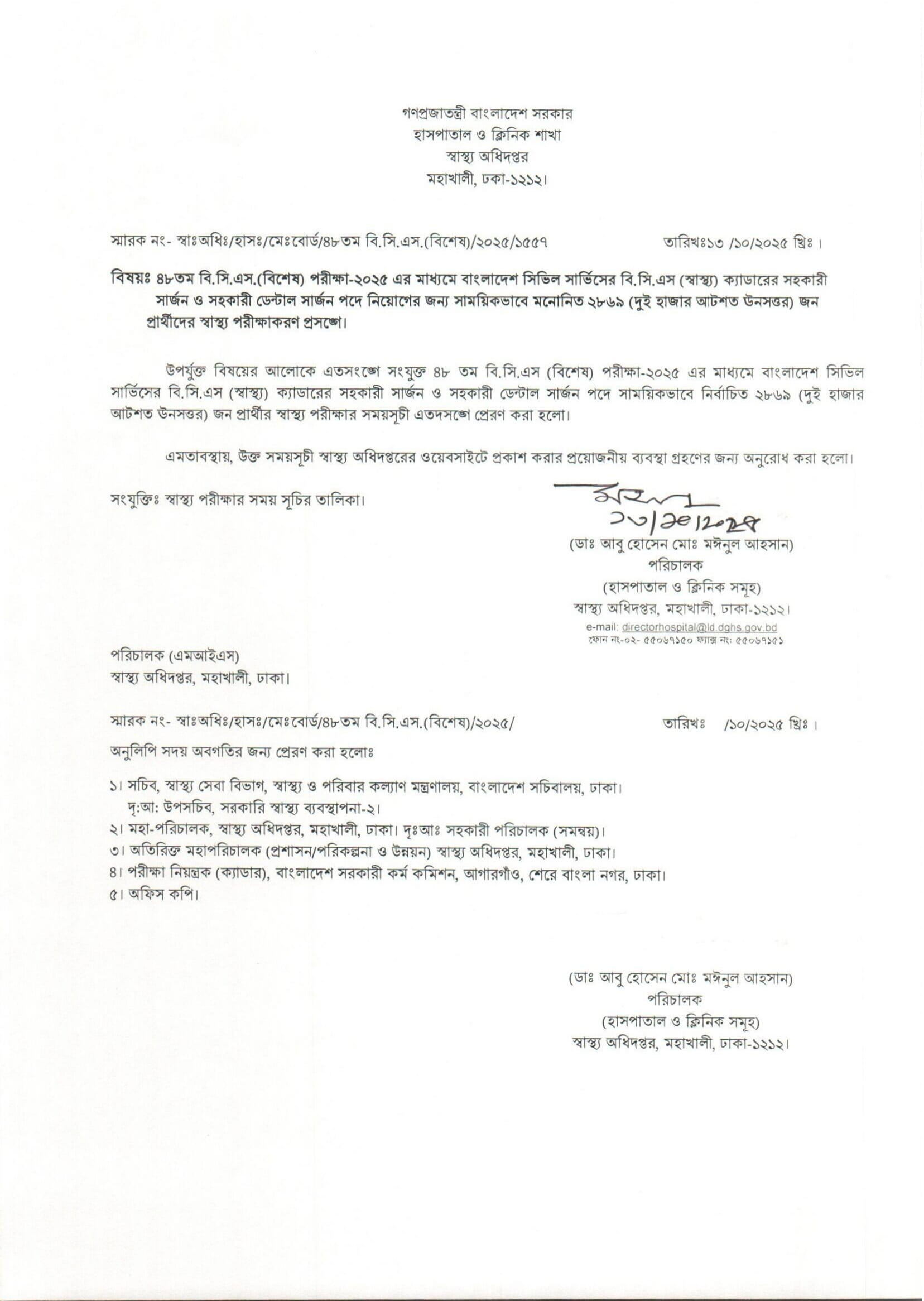 48th BCS Medical Test Date 2025 PDF-1