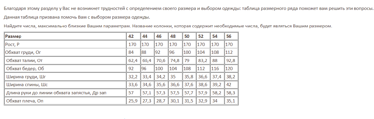 размерная сетка