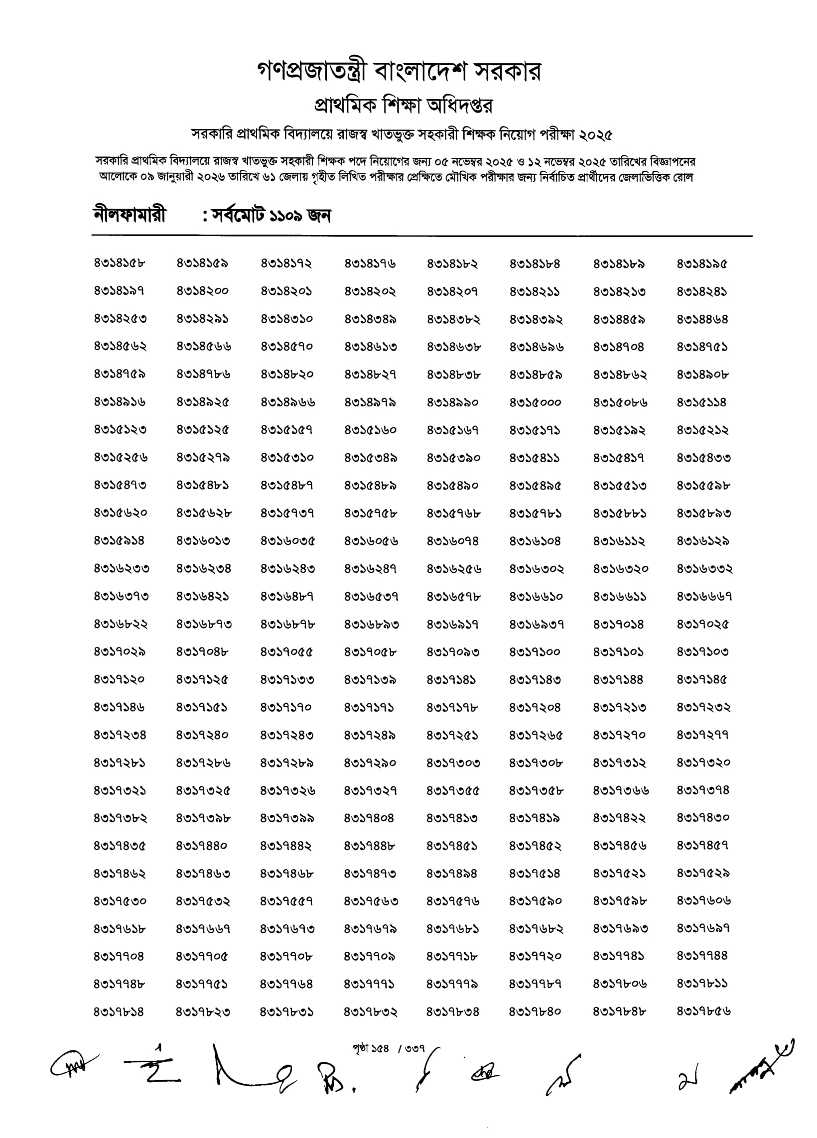 Primary MCQ Exam Result 2026 PDF 156