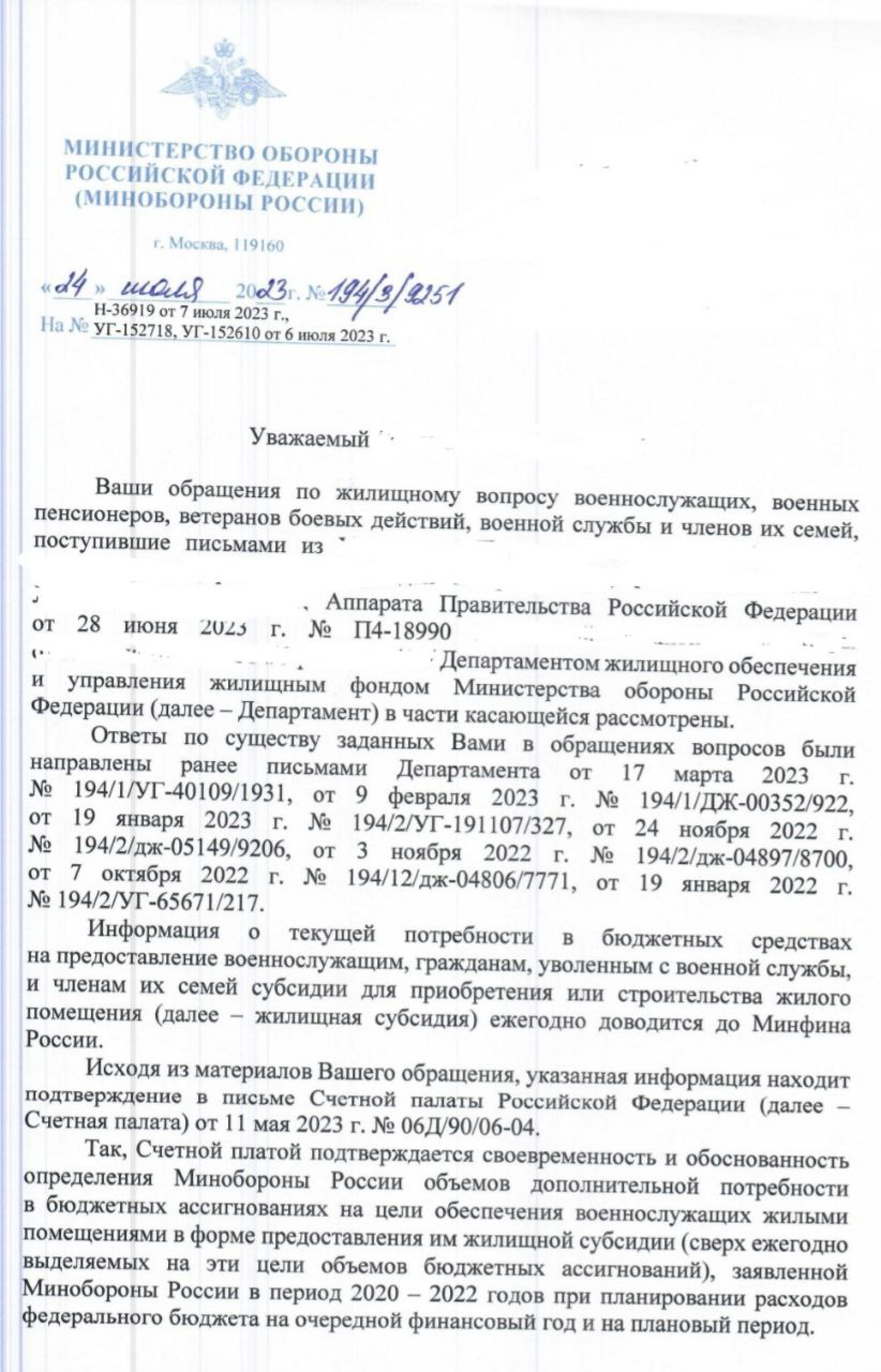 Ответ Минобороны