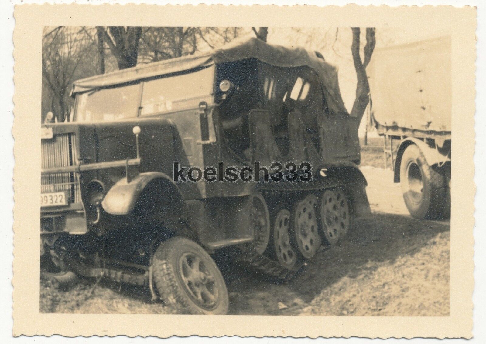2 Fotos Panzer Halbkette mit Schild NICHT FAHRBEREIT am Kühler ! Sd.Kfz. Wrack !.