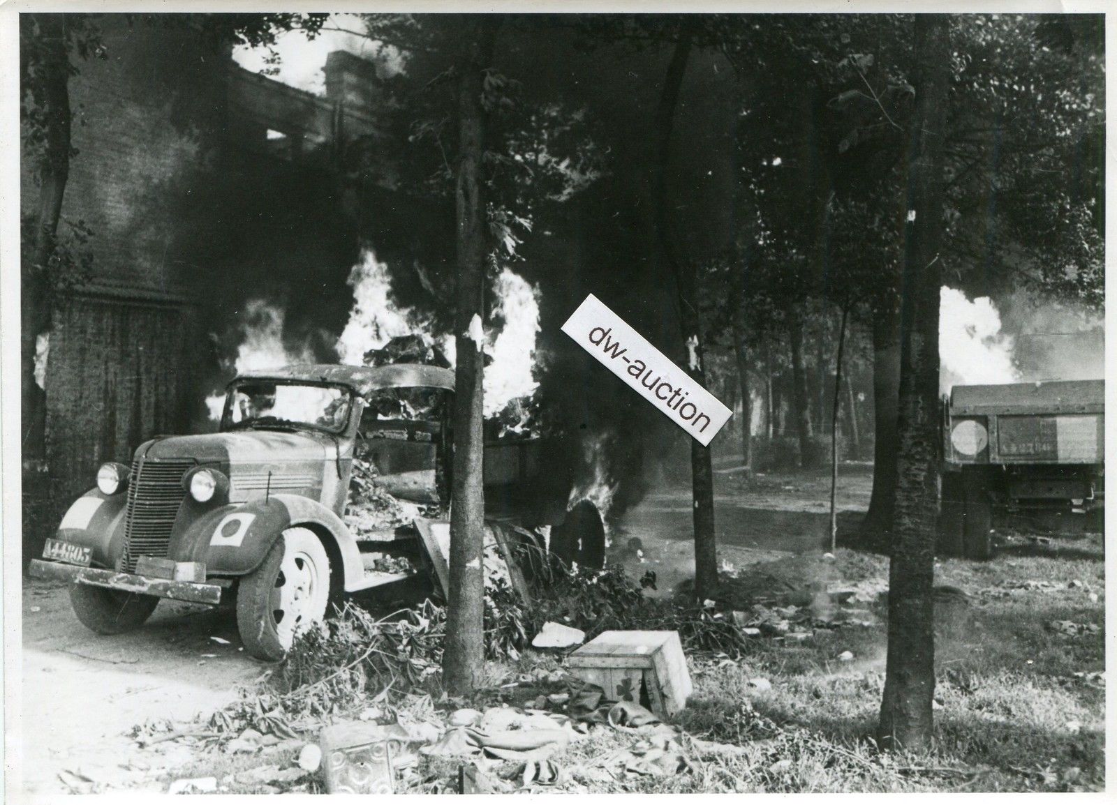 Dunkerque Dünkirchen , brennendes Fahrzeug mit K