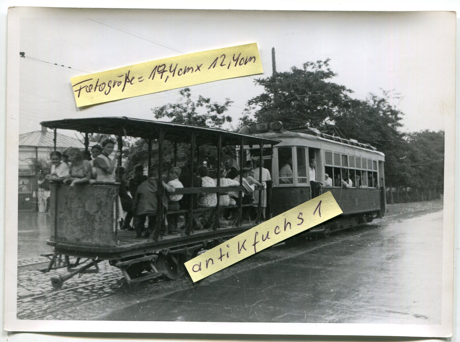 Straßenbahn mit Einheimischen in Pjatigorsk in Rußland im 2.WK