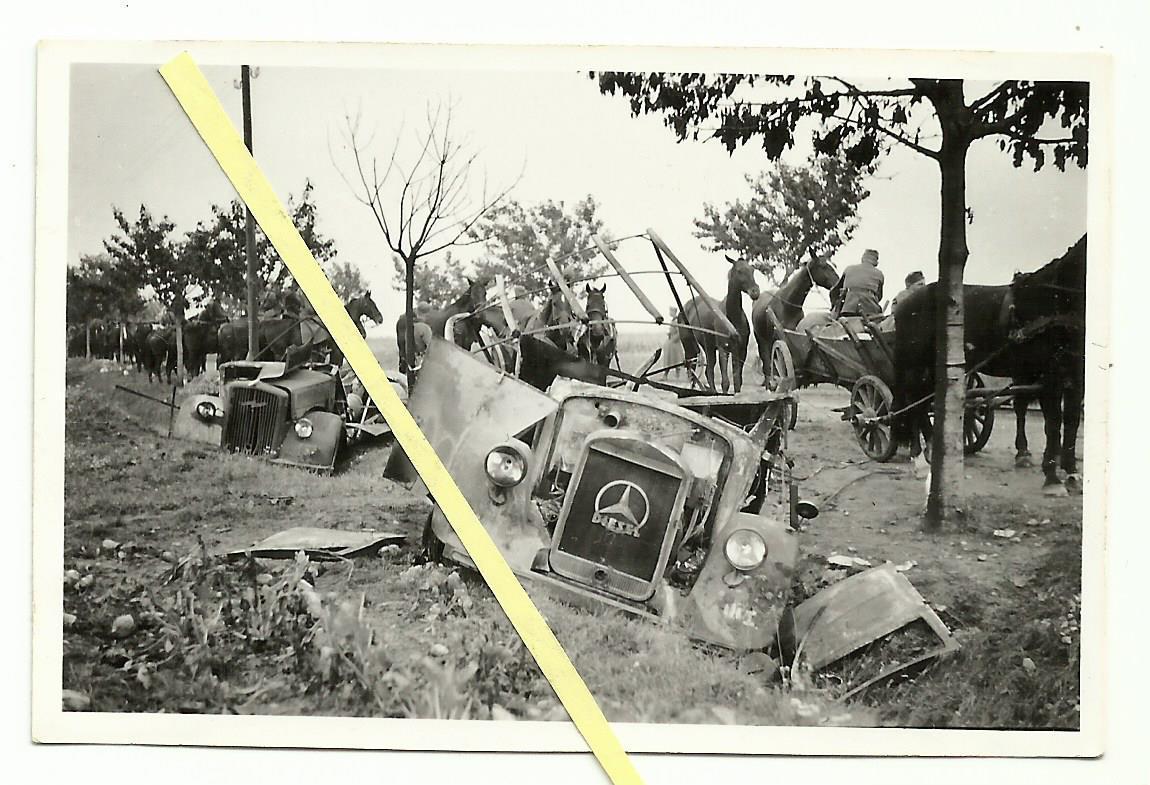 zerstörte deutsche LKW Kolonne KFZ Lastwagen