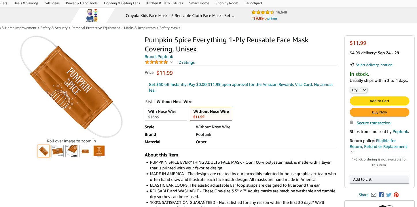 Screenshot 2021-09-15 at 01-37-18 Amazon com Pumpkin Spice Everything 1-Ply Reusable Face Mask Cover