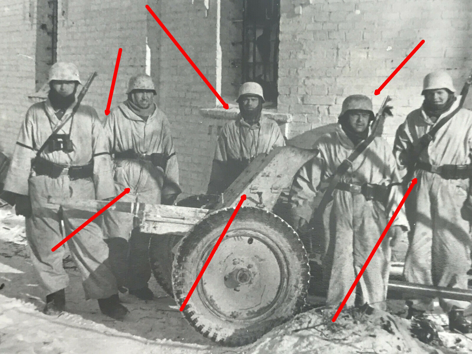 Foto, Panzerjäger mit 3,7cm PAK in Wintertarn, Camo, Schneeanzug, Fernglas1