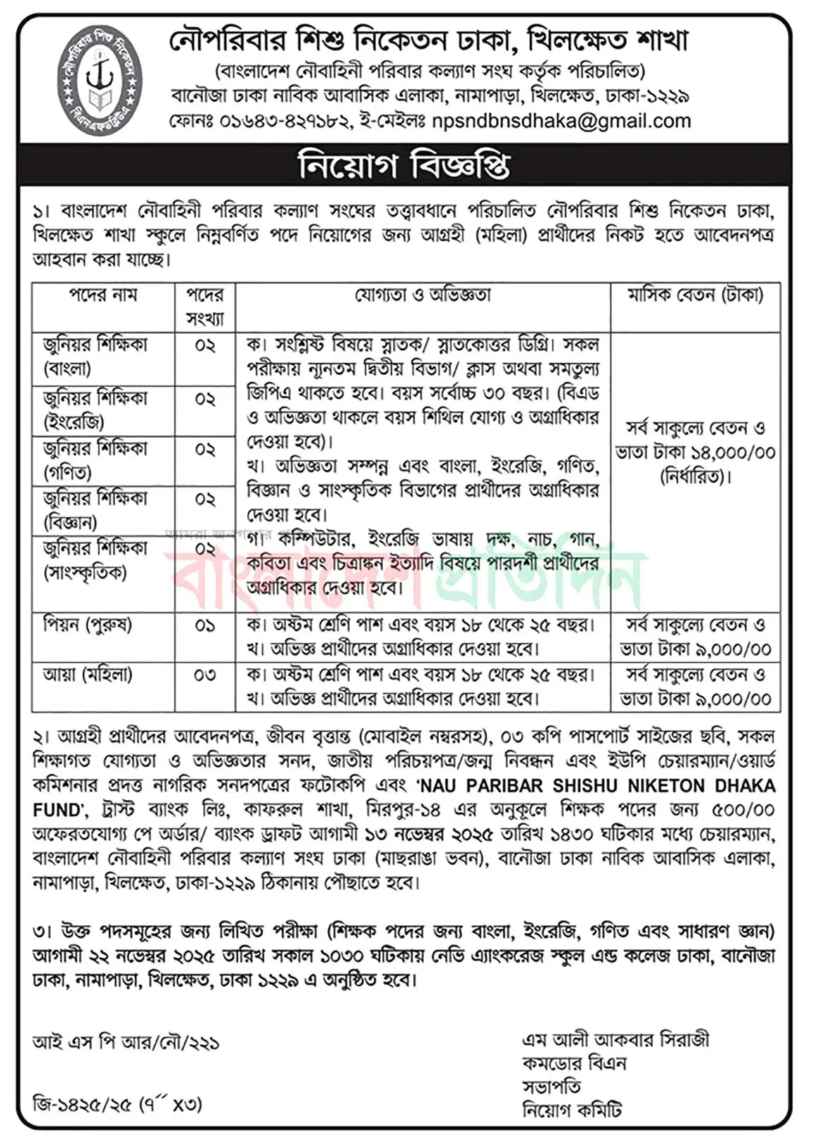 NPSN Dhaka Job Circular 2025