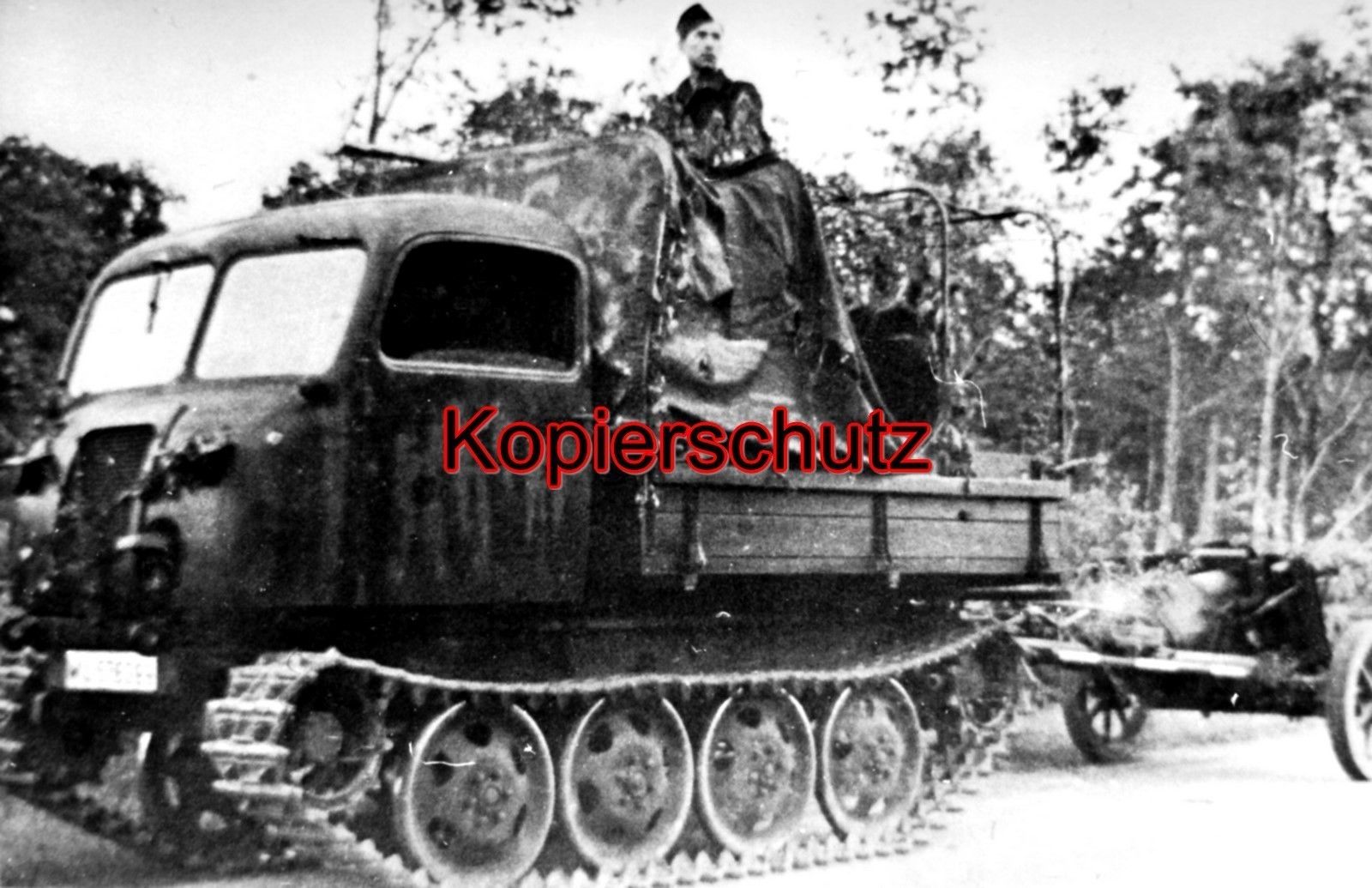 Kettenfahrzeug zieht Geschütz
