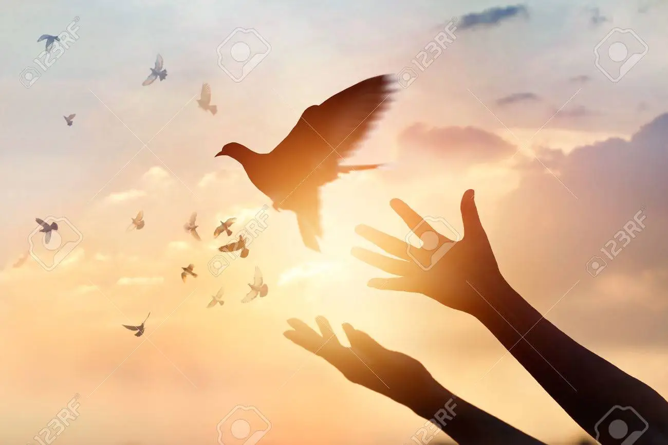 85542342-기도하고-자유로운-새-일몰-배경-희망-개념에-자연을-즐기는-여자