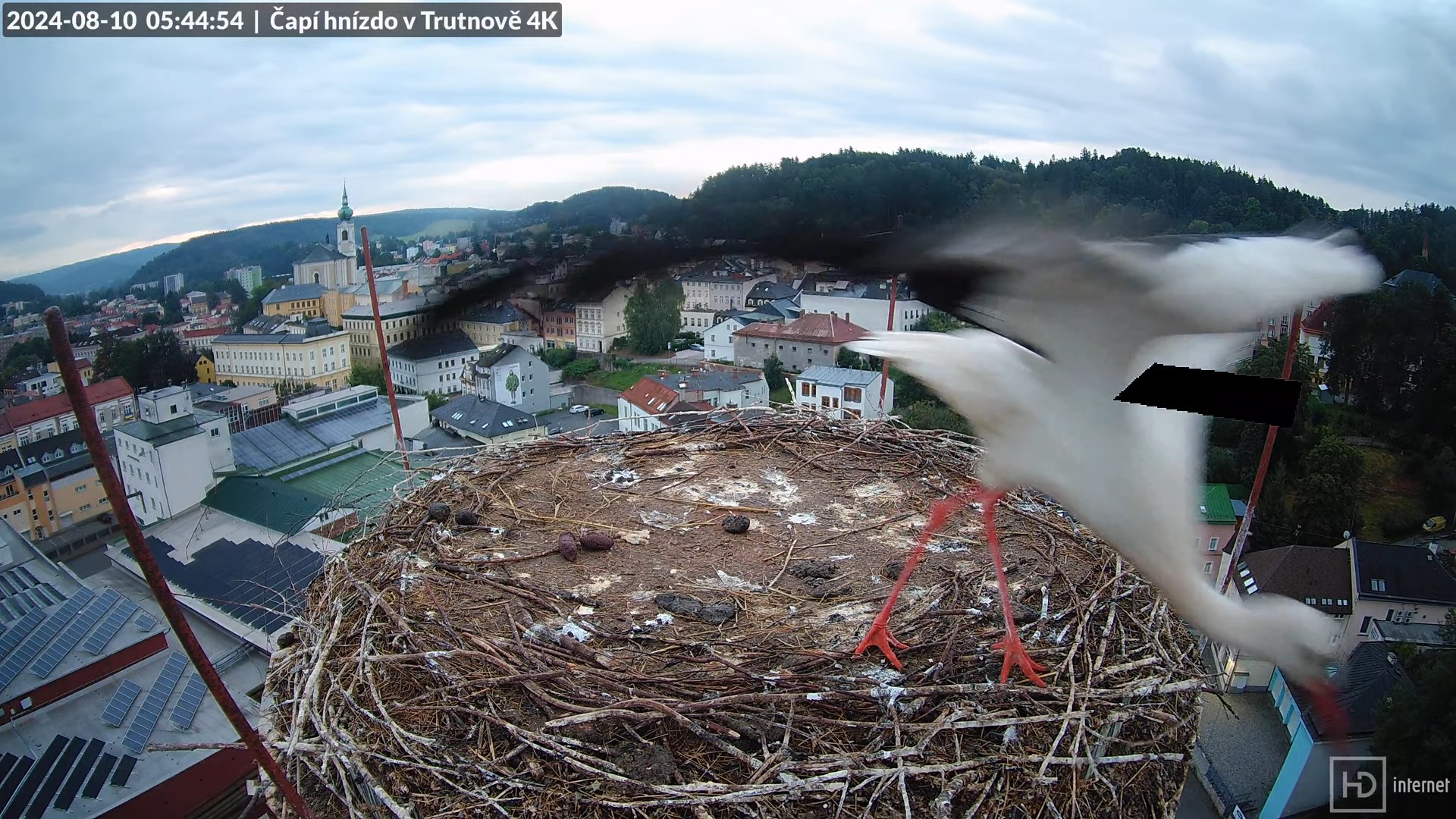 Tiešraidē no stārķa ligzdas uz alus darītavas skursteņa Trutnovā 9-22-28 screenshot