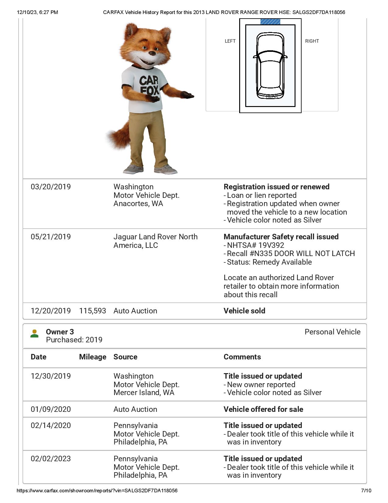 CARFAX Vehicle History Report for this 2013 LAND ROVER RANGE ROVER HSE_ SALGS2DF7DA118056-page-007