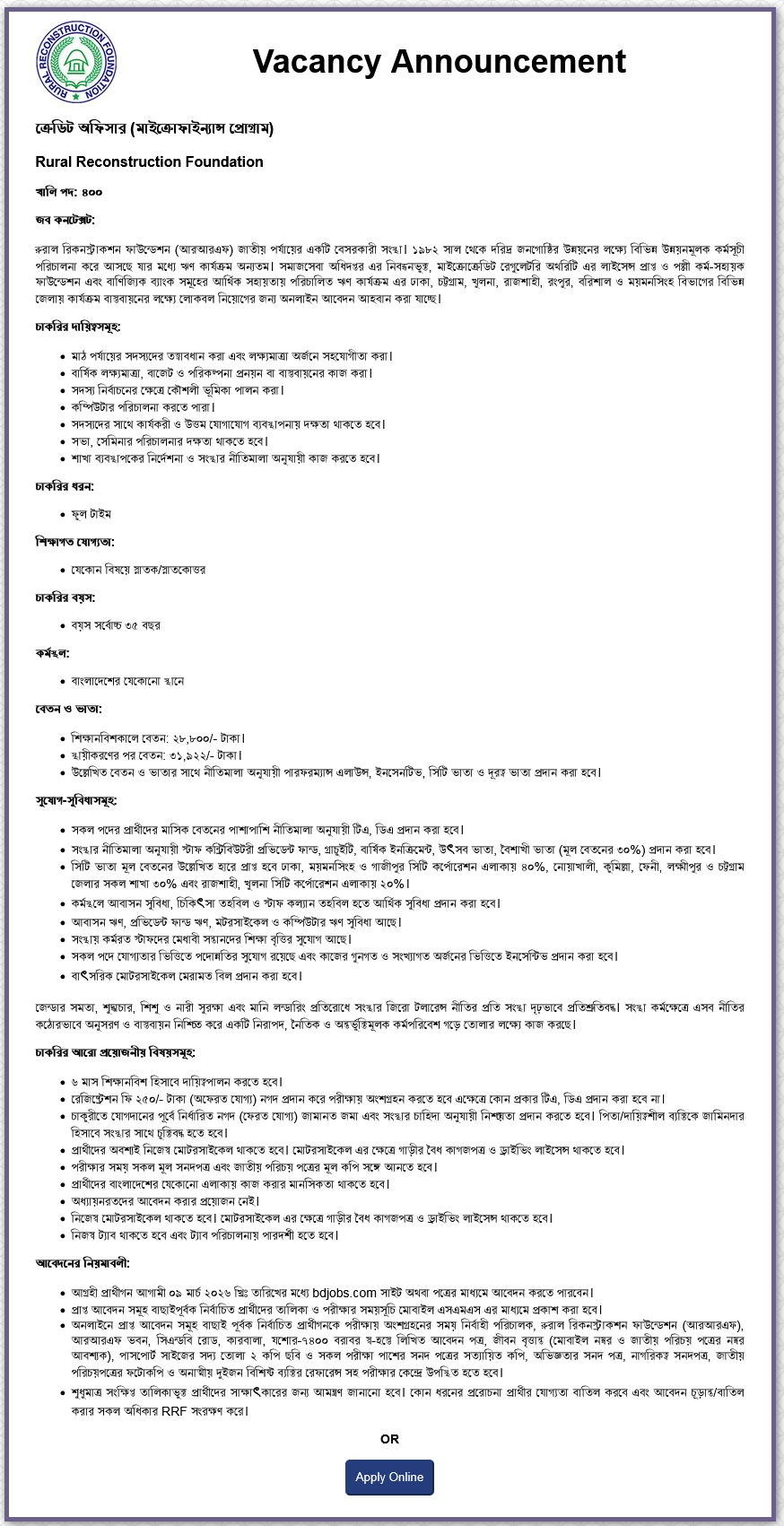 RRF Job Circular 2026