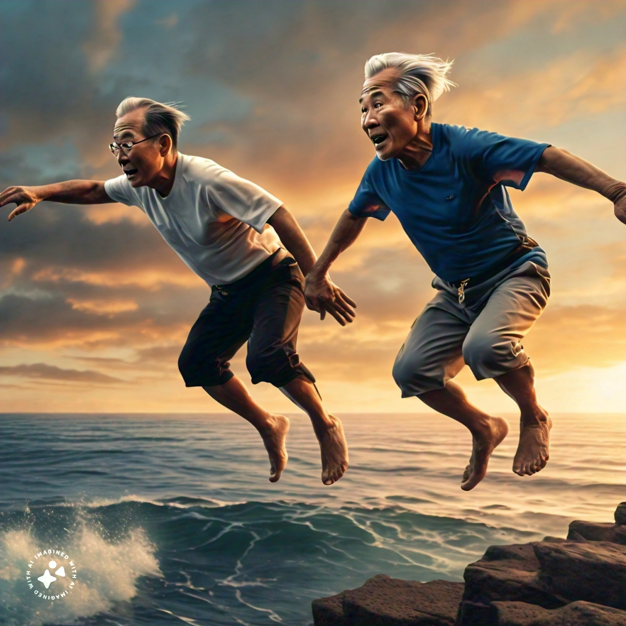 two_handsome_asian_old_men_cliff_diving