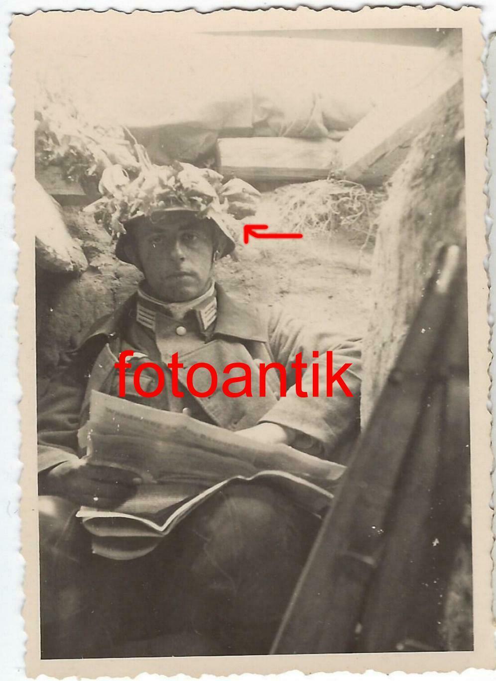 Ostfront Soldat im Schützengraben Stellung Tarn Stahlhelm Kampf Pause