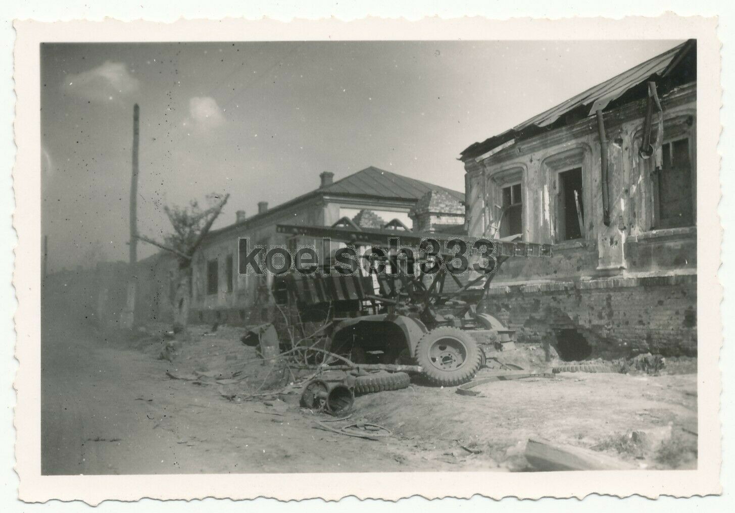 Foto Stalinorgel Raketenwerfer LKW Wrack an Häuser Ruinen Ostfro