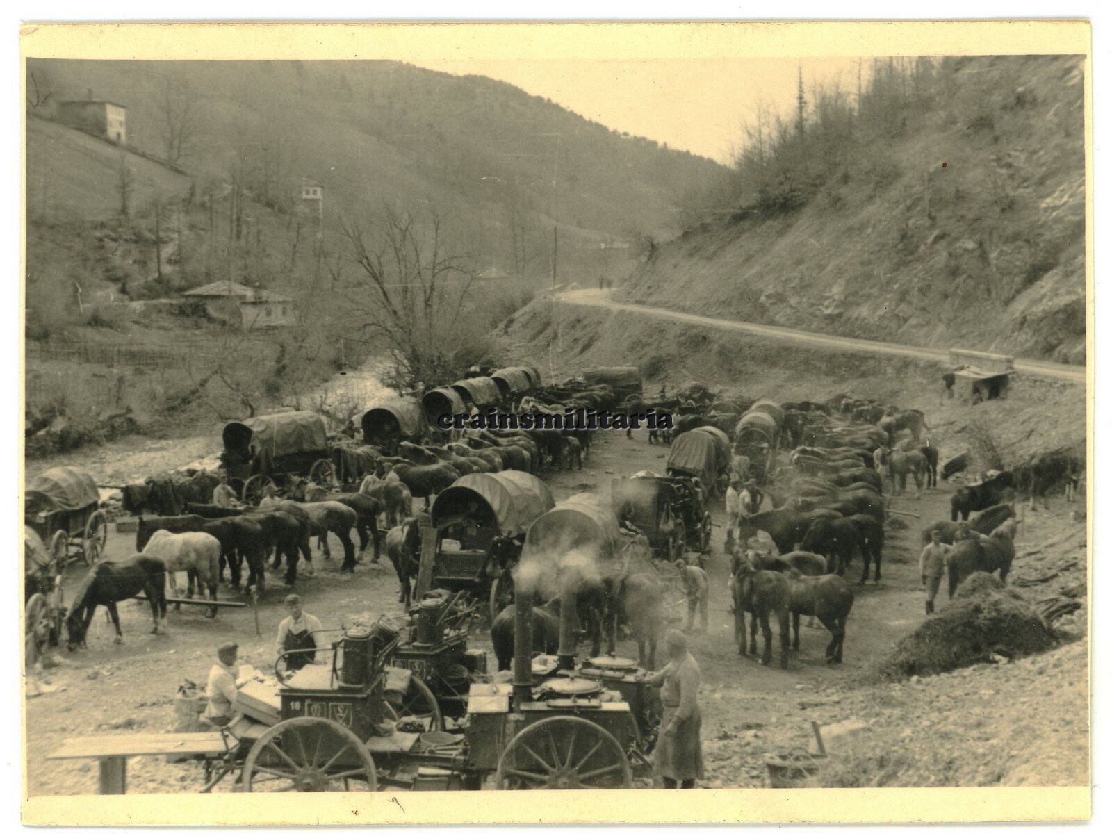 Orig. Foto Feldküche Gulashkanone Wagen m. Wappen vor SOFIA Bulgarien 1941 Pferd