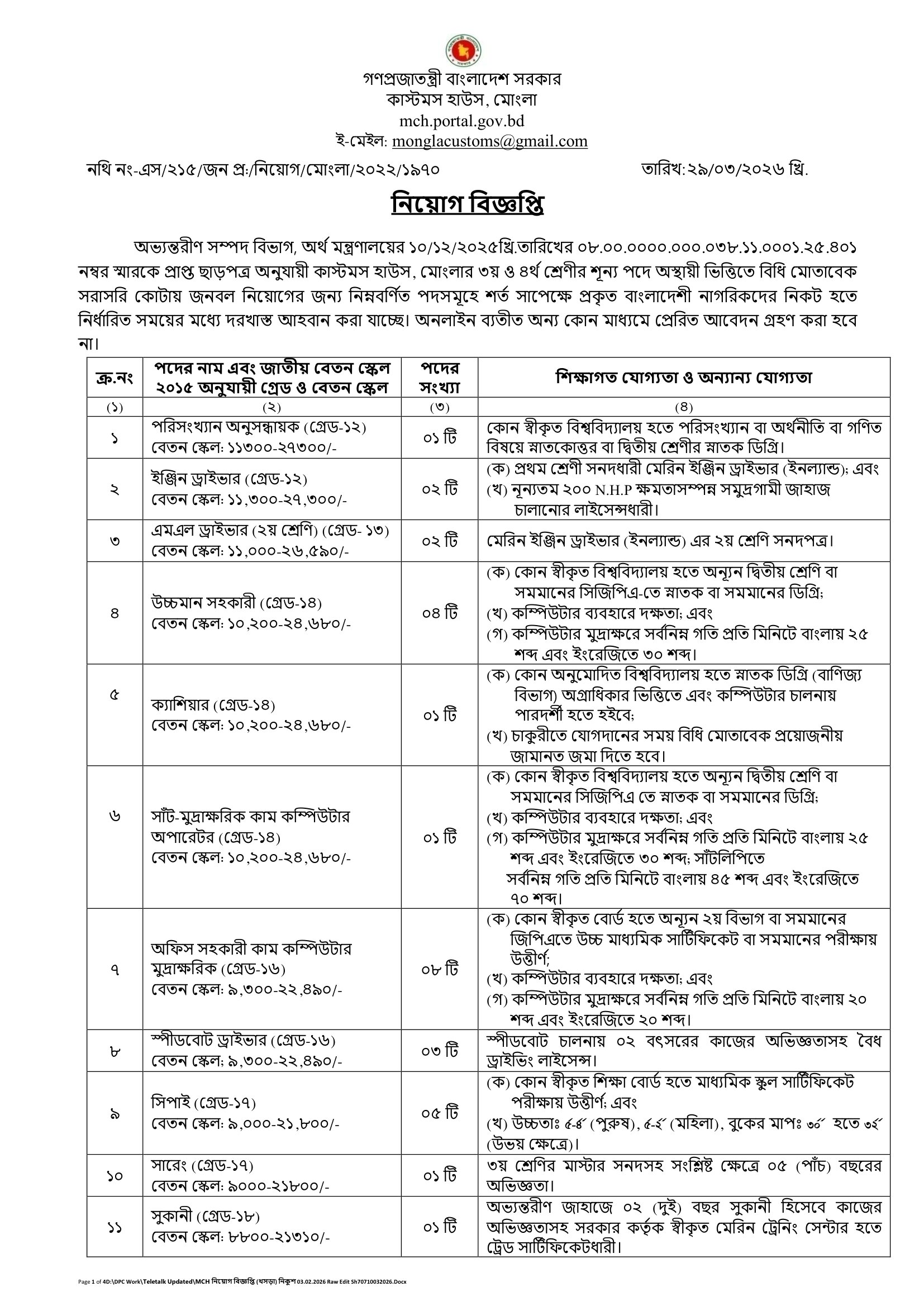 MCH Job Circular 2026 PDF 1