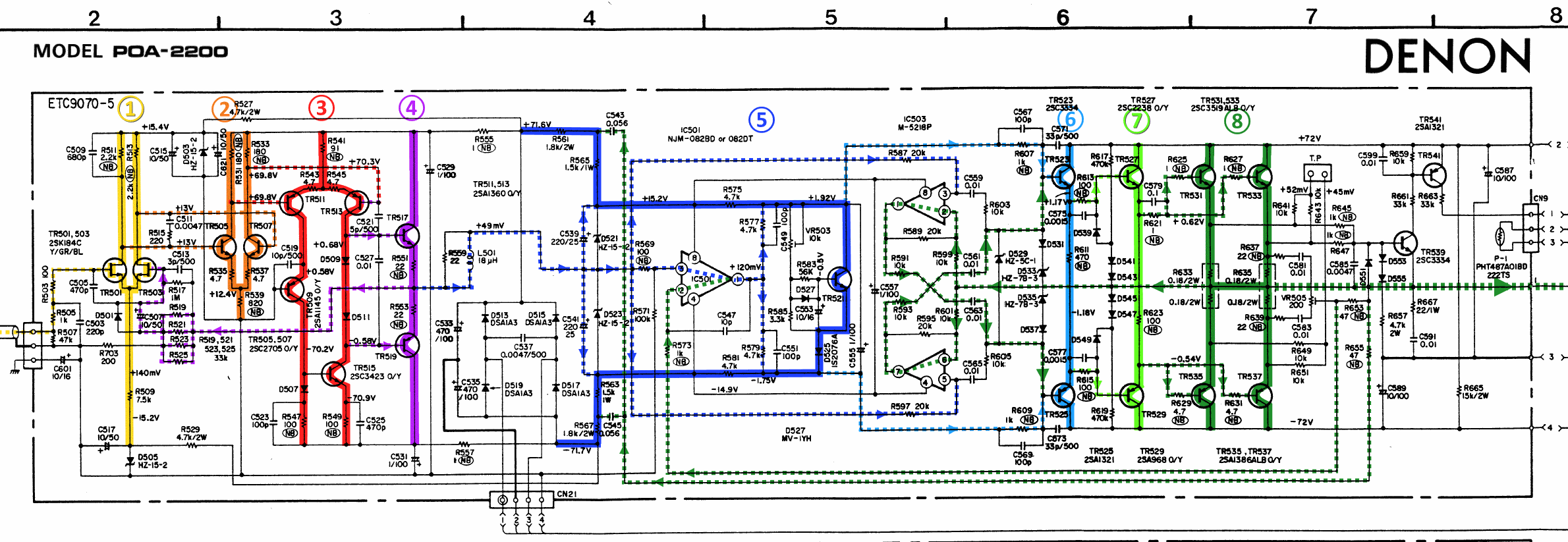 Denon POA 2200 schematic detail left power amp stages marked