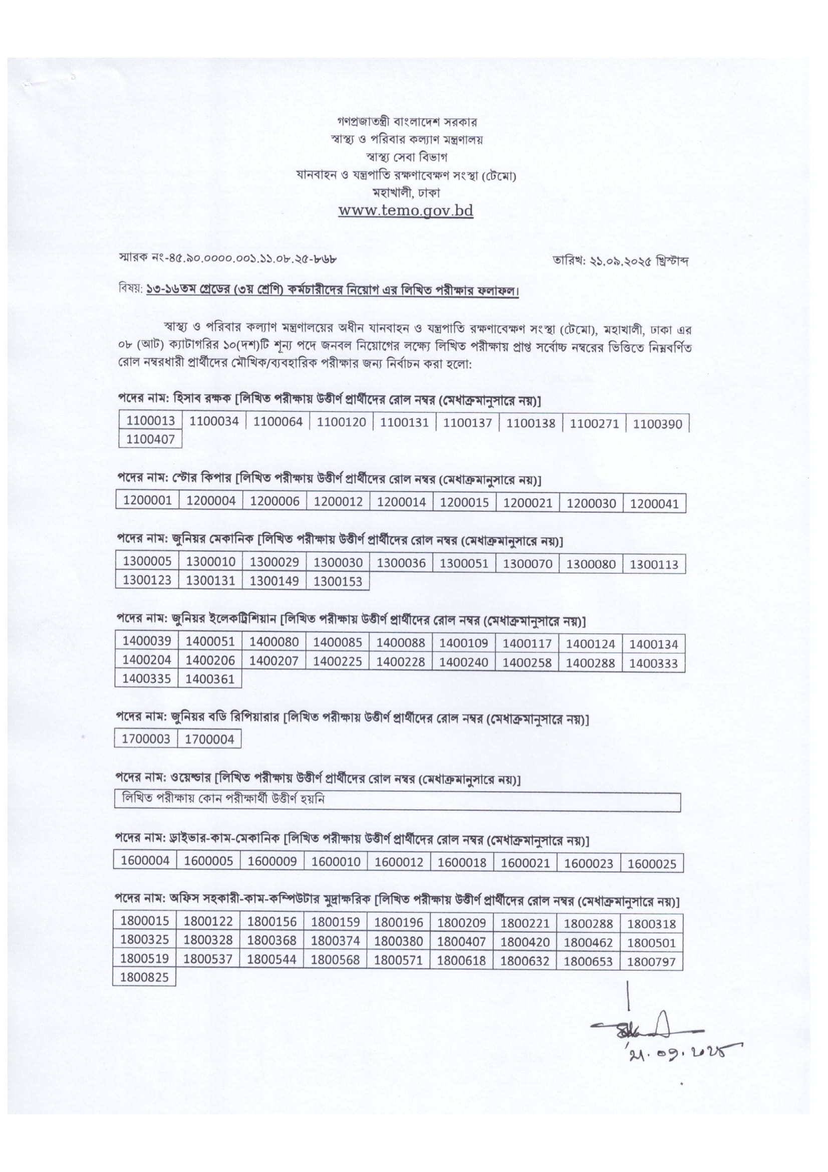TEMO Exam Result 2025 PDF-1