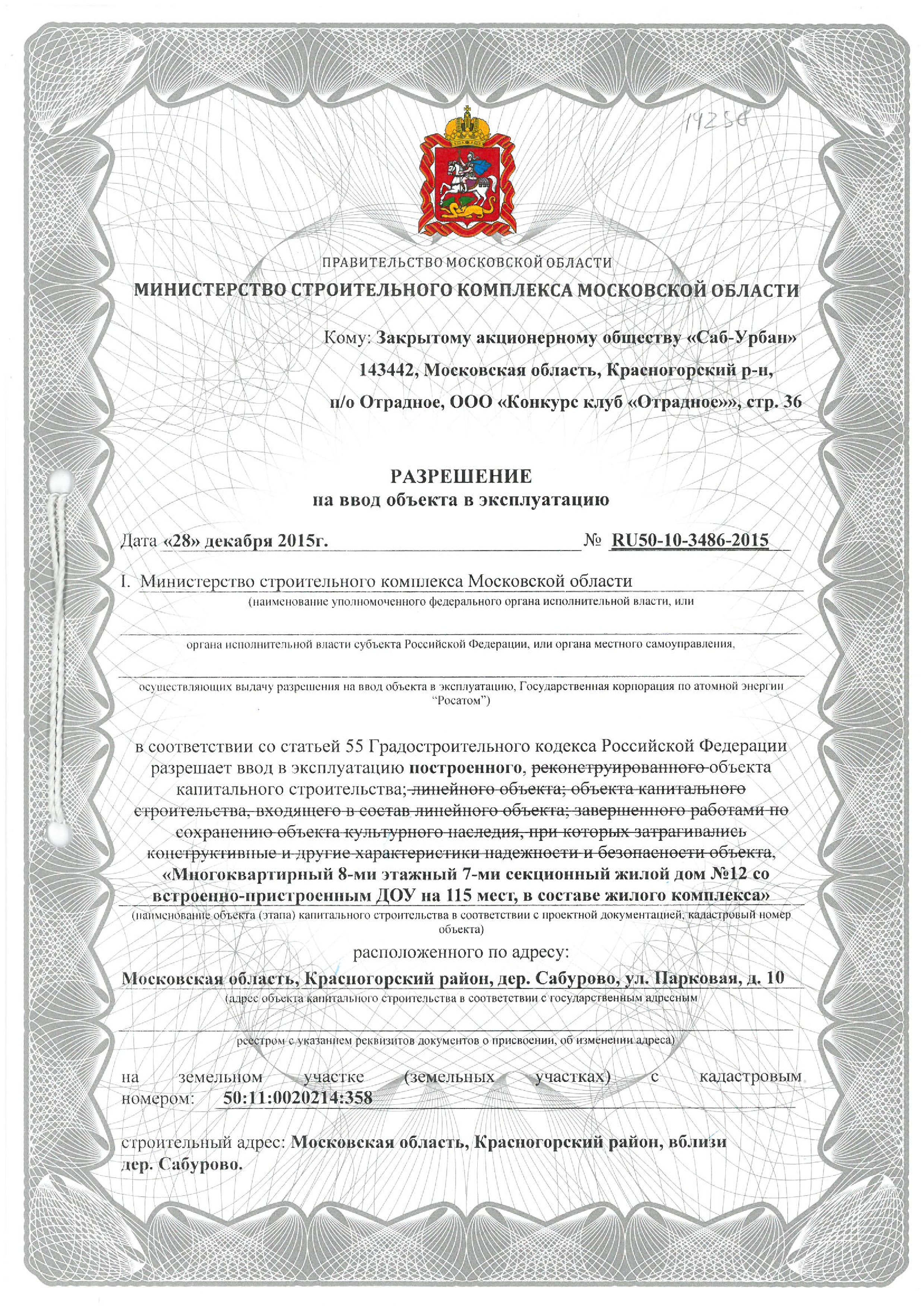 12 разрешение на ввод дома - Page 1