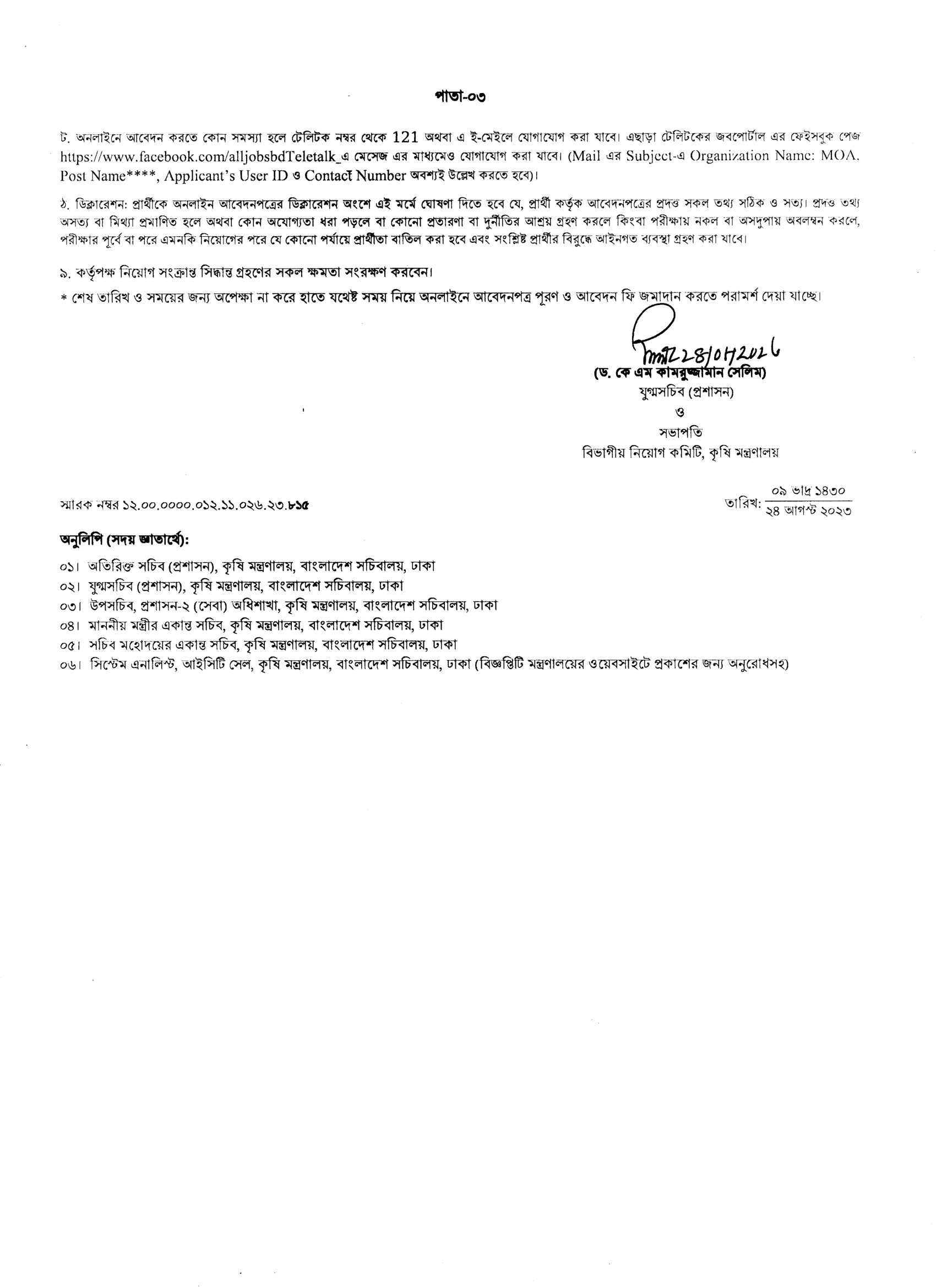 Ministry of Agriculture (MOA) Job Circular 2023 PDF-3