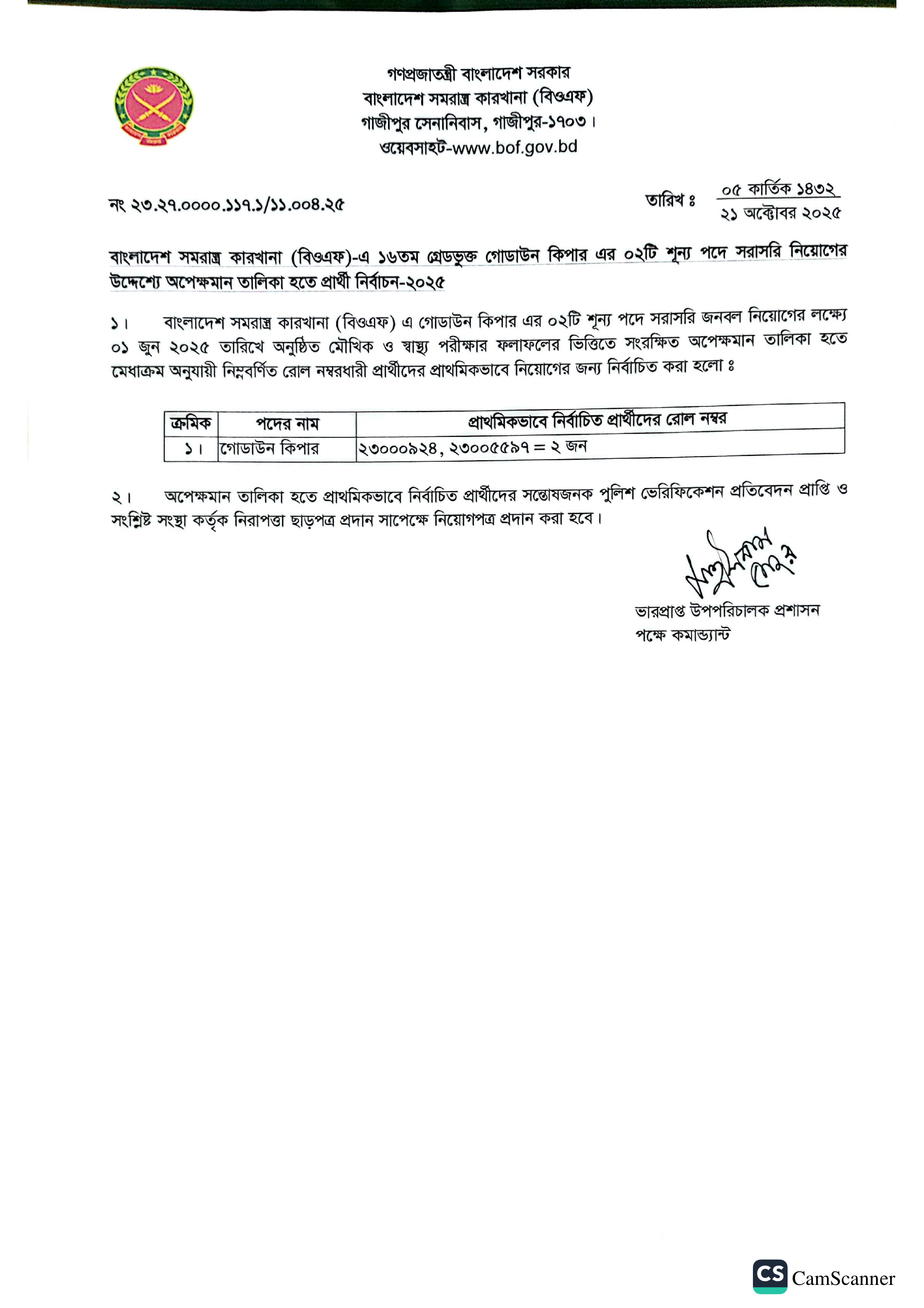 BOF Panel Result PDF