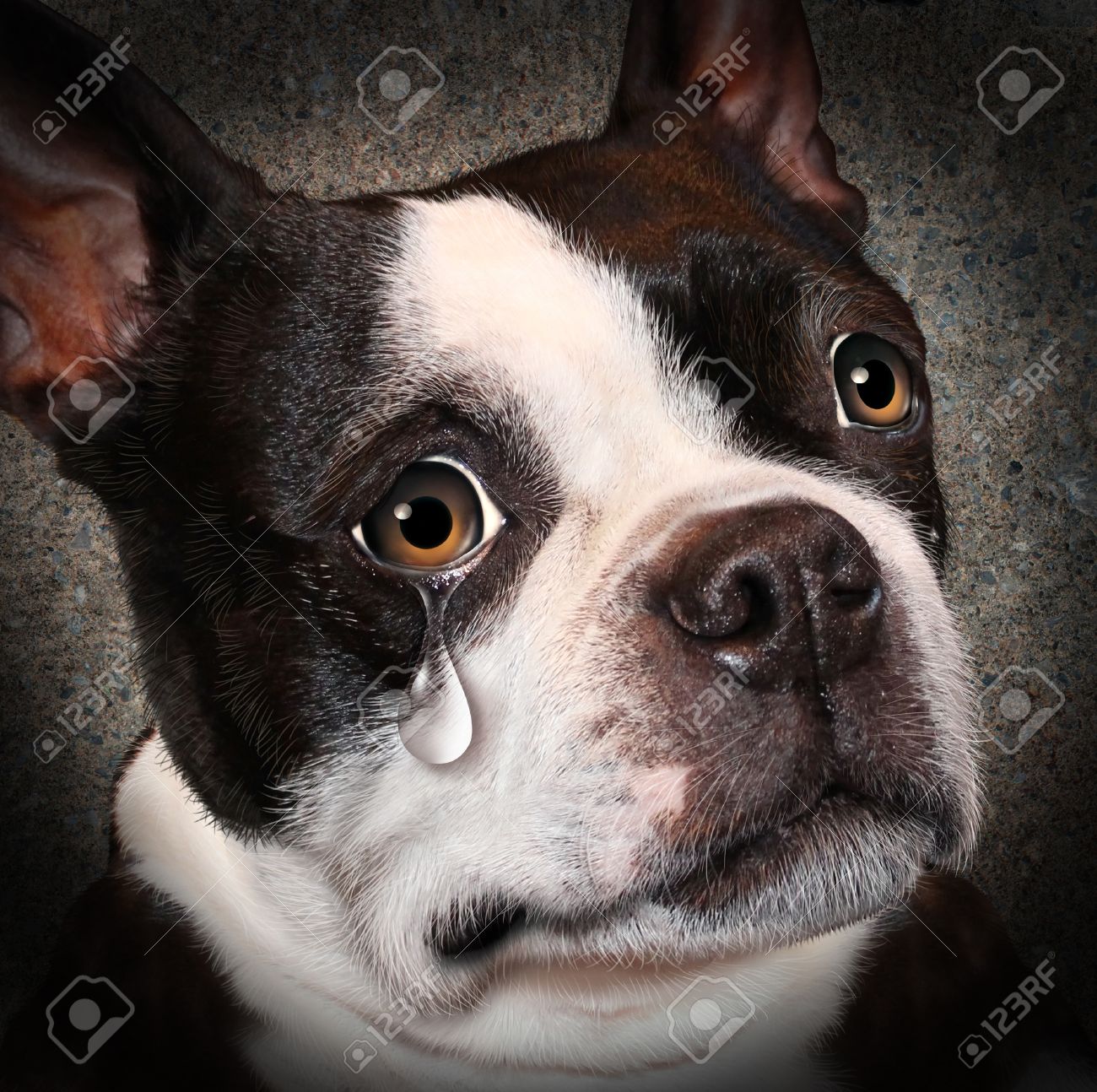 26171436-lost-pet-animal-cruelty-and-neglect-concept-with-a-sad-crying-dog-looking-at-the-viewer-wit