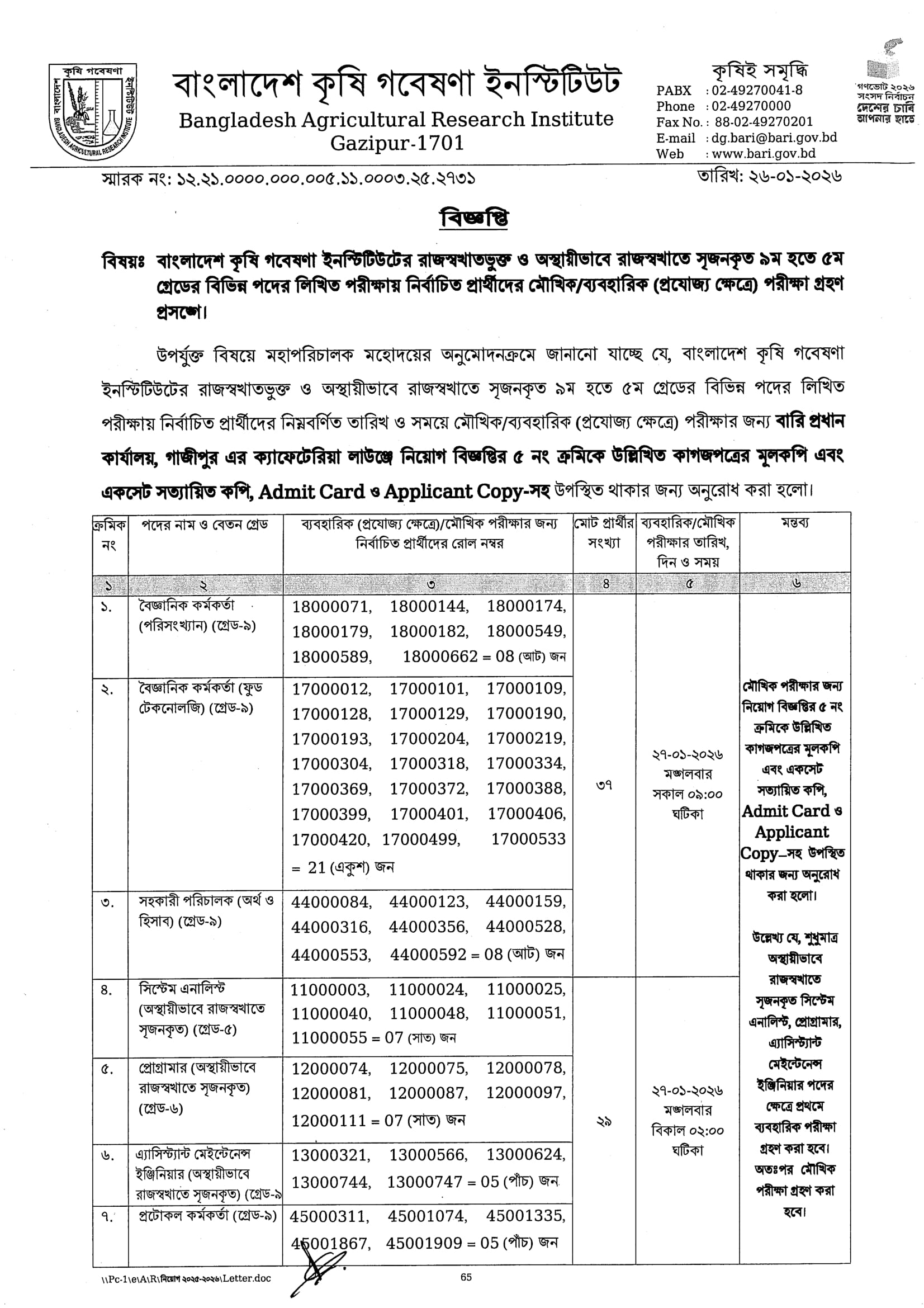 BARI Viva and Practical Test Date 2026 PDF 1