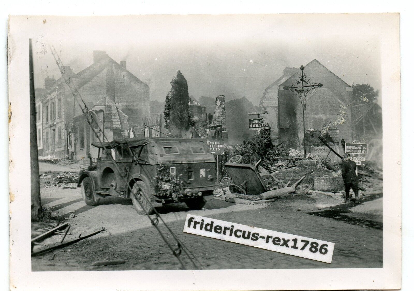 Foto WH Vormarsch France bei Forges-les-Eaux s Einheits-Pkw Kübel Kennung.