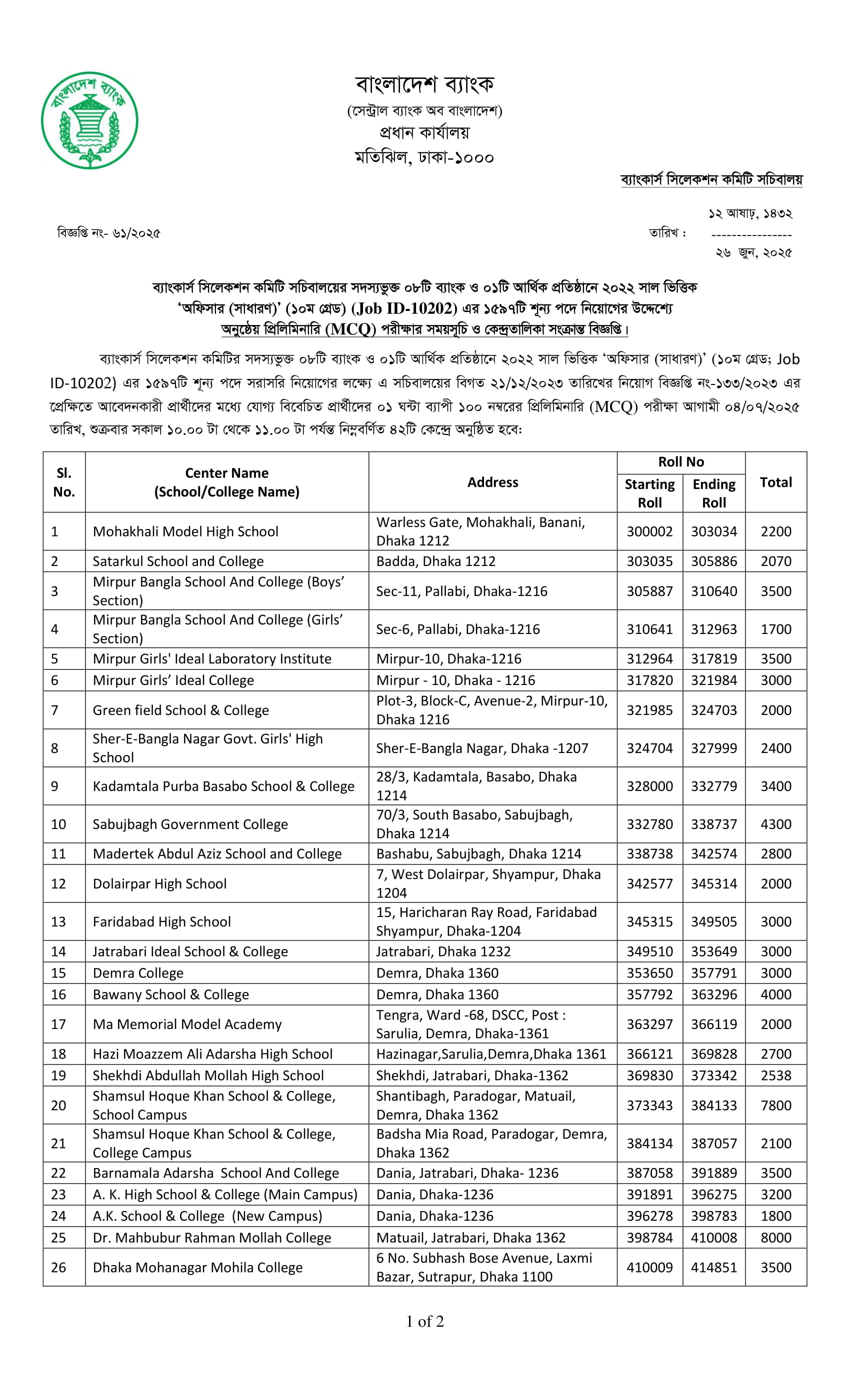 Combined 9 Bank Officer (General) MCQ Exam Seat Plan 2025 PDF-1