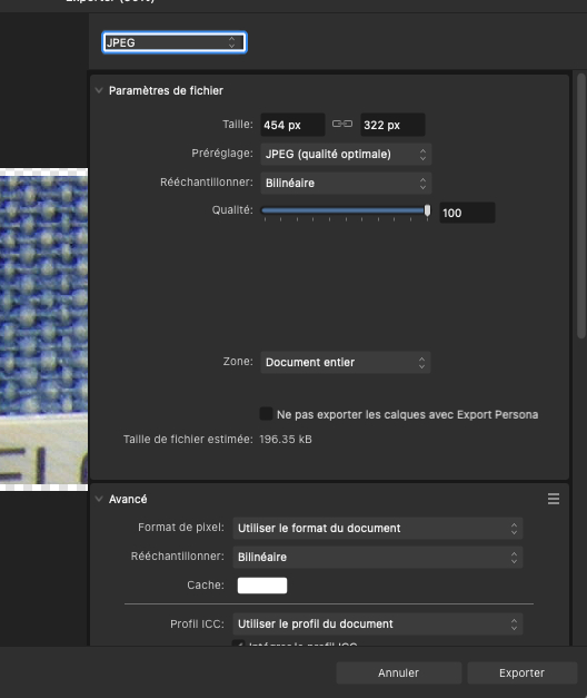 exporter jpeg