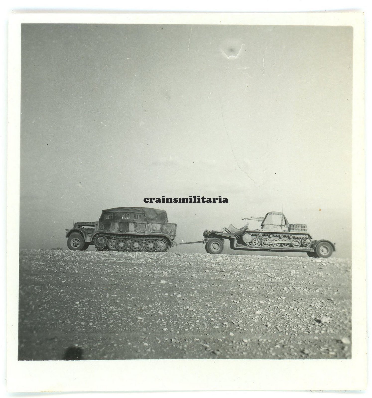 Orig. Foto DAK Halbkette SdKfz mit Panzerjäger I Tieflader Anhänger Afrika 1941