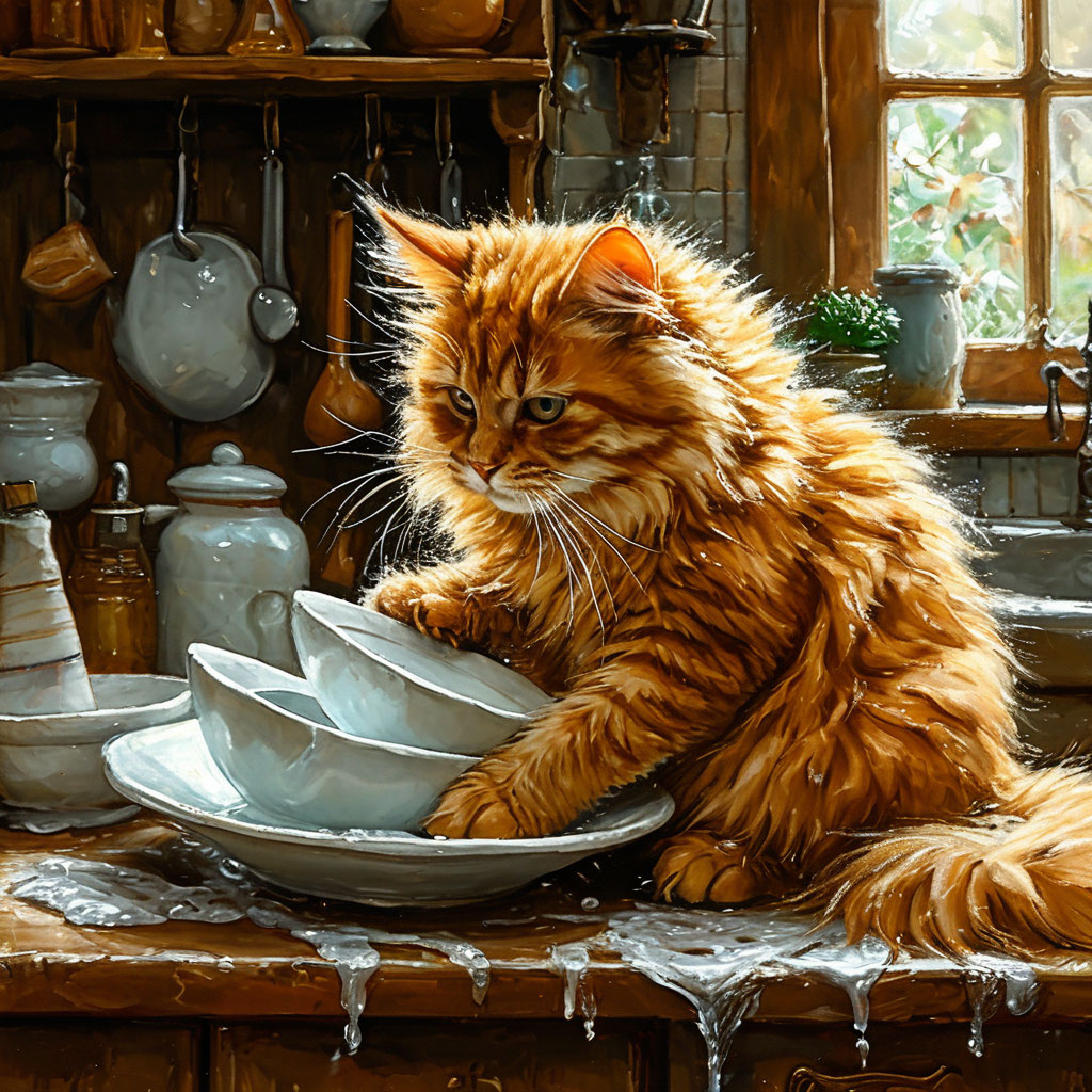 кот и посуда
