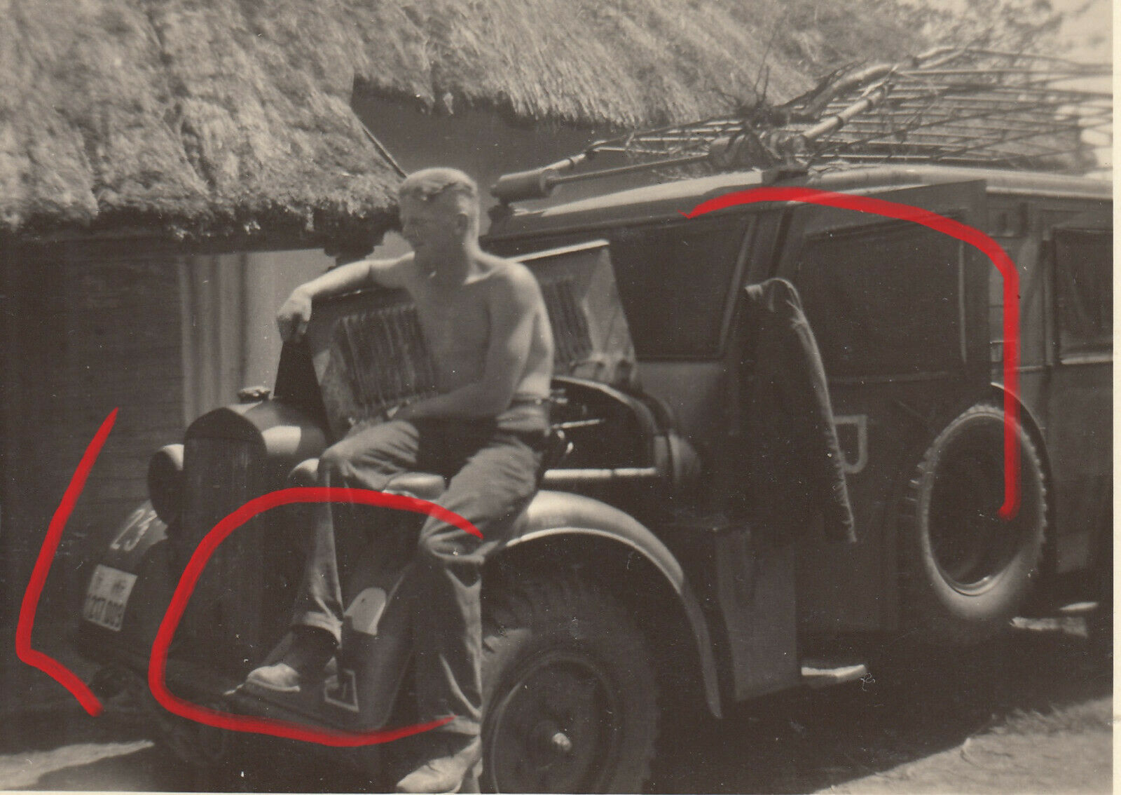 Foto Soldat Großdeutschland GD Sturmgeschütz Funkwagen PKW Wappen Russland