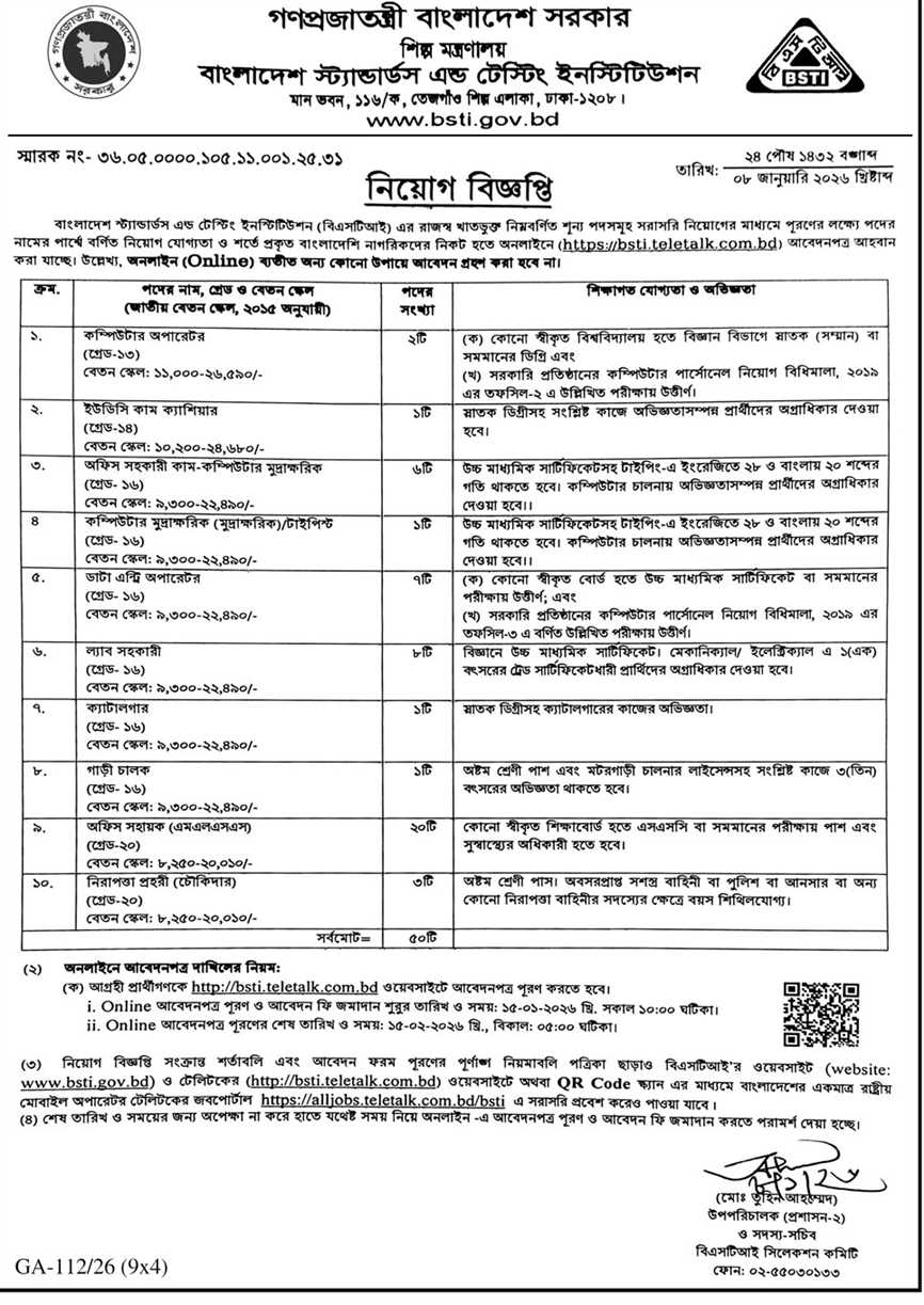 BSTI Job Circular 2026