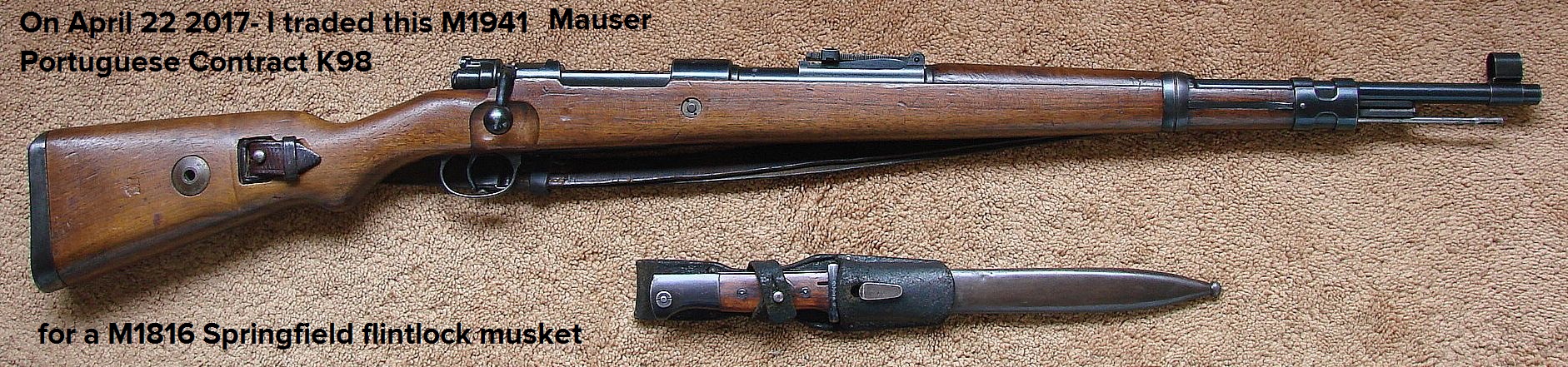 1941 Portuguese Contract K98k -TRADED for a U.S. M1816 Springfield flintlock musket
