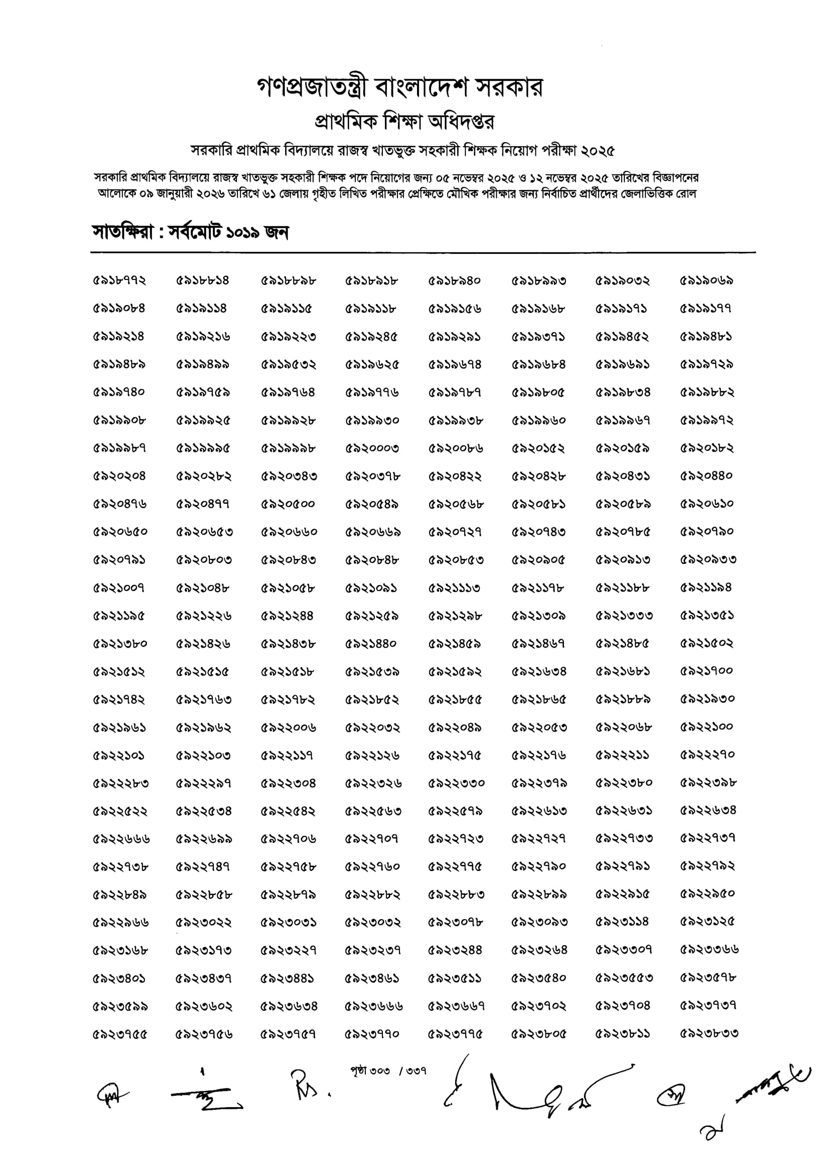 Primary MCQ Exam Result 2026 PDF 305