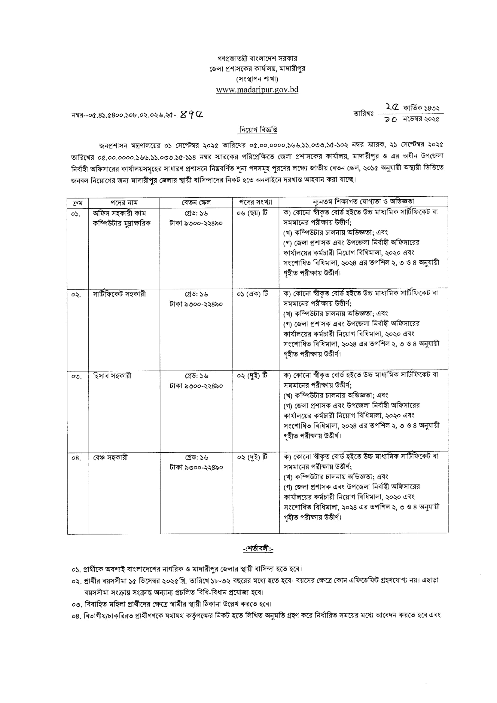 DC Office Madaripur Job Circular 2025 PDF 1