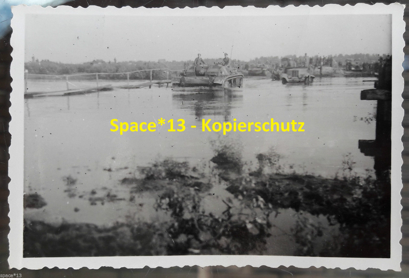 Foto Stug Panzer mit Balkenkreuz fährt duch Flus