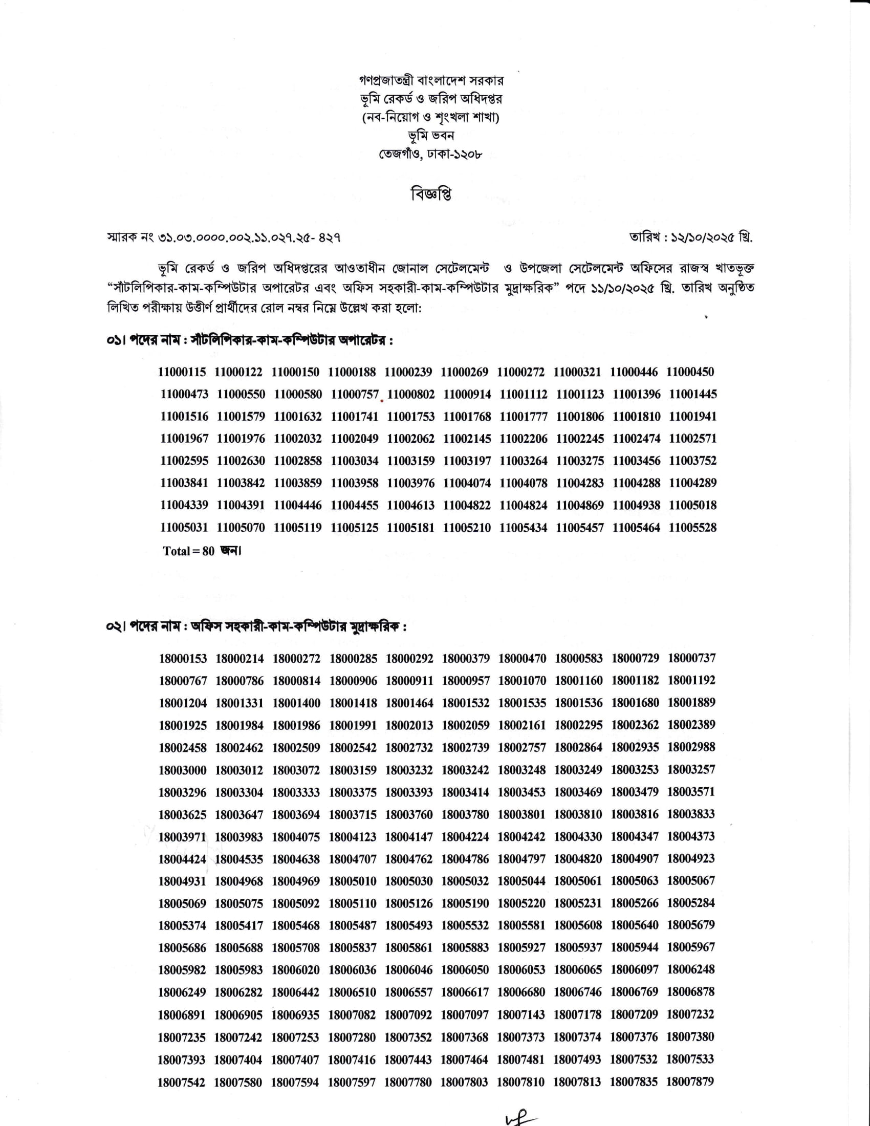 DLRS Written Exam Result 2025 PDF-1