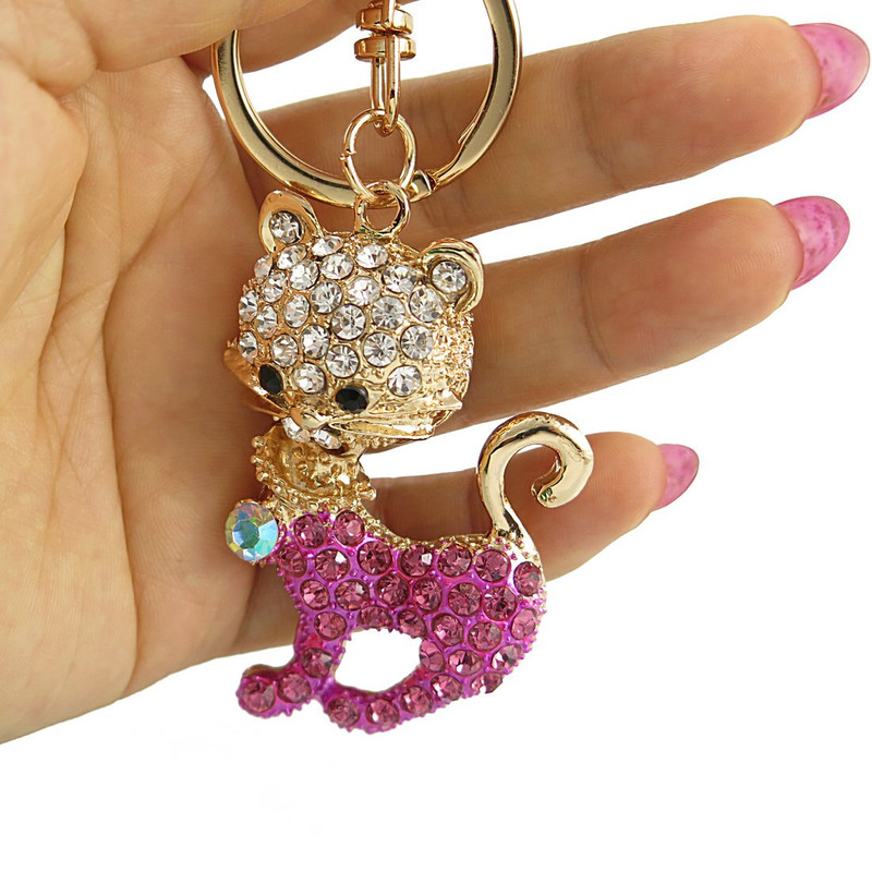 Zinc-Alloy-Cute-Cat-Rhinestone-Keychain-Luxury-Ladies-Car-Key-Chain-Ring-Holder-Charm-Women-Bag