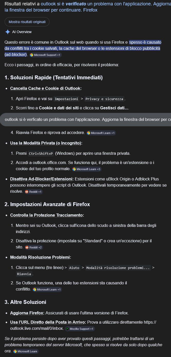 Screenshot 2026 04 28 at 07 55 13 outlook si è verficato un problema con l applicazione Aggiorna la