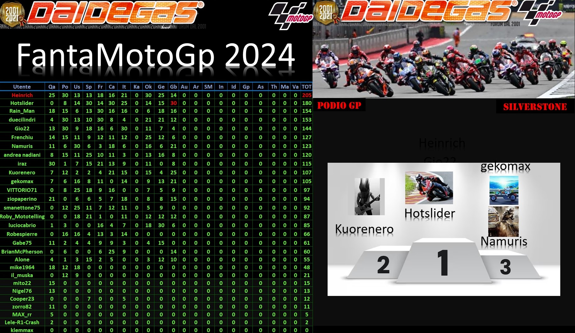 Silverstone - Classifica e podio della gara disputata