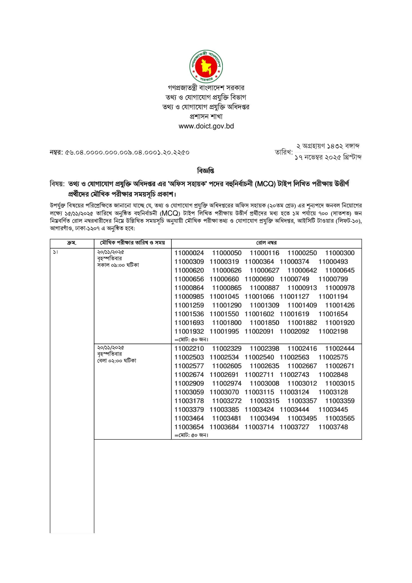 Department of ICT Office Sohayok Viva Date 2025 PDF 1