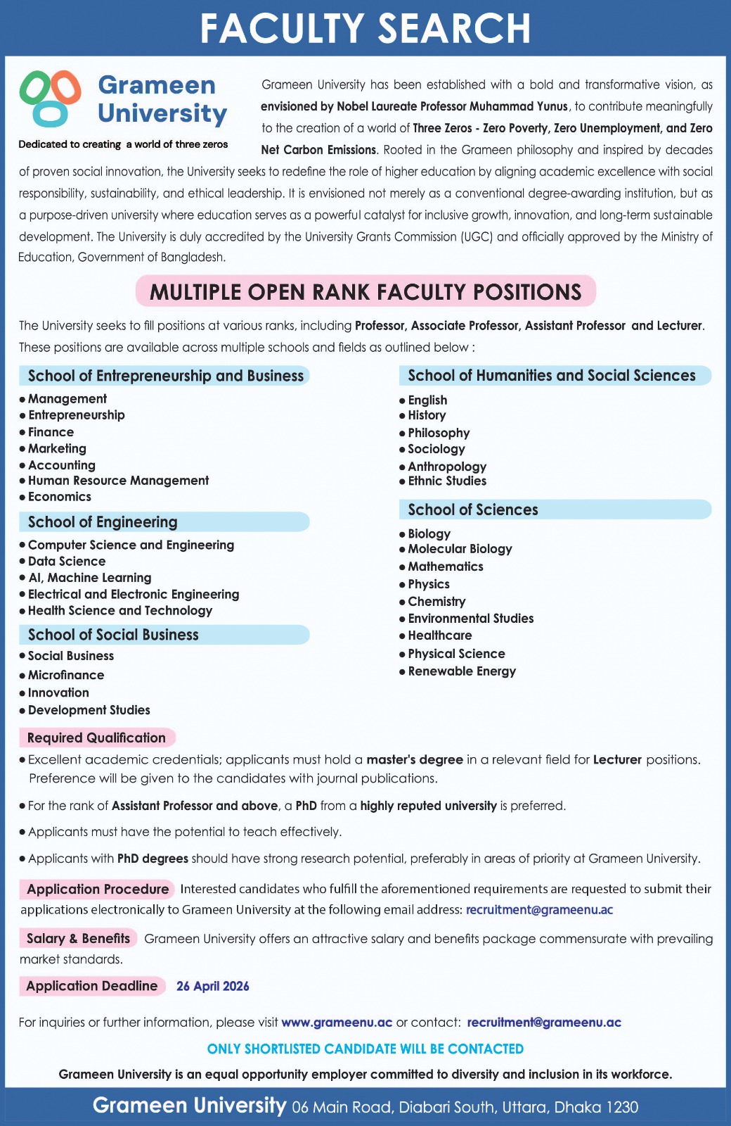 Grameen University Job Circular 2026